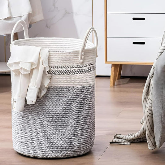 Cheer Collection Large Cotton Rope Laundry Hamper 16 x 16 x 22 Inch Versatile Storage Basket