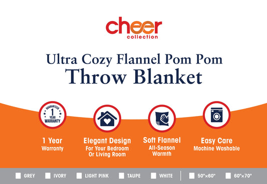 Cheer Collection Pom Pom Flannel Blanket | Ultra Soft on Skin, Lightweight Bed or Couch Throw Blanket with Pompoms