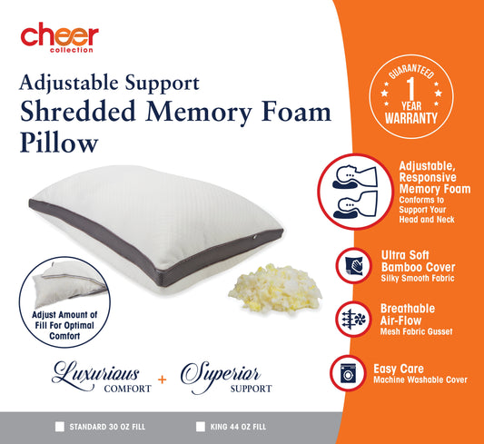 Cheer Collection Adjustable Shredded Memory Foam Air Pillow with Gusset - Set of 2