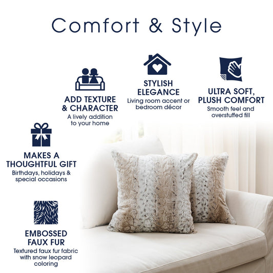 Cheer Collection Embossed Faux Fur Throw Pillows 20" x 20" - Snow Leopard - Set of 2
