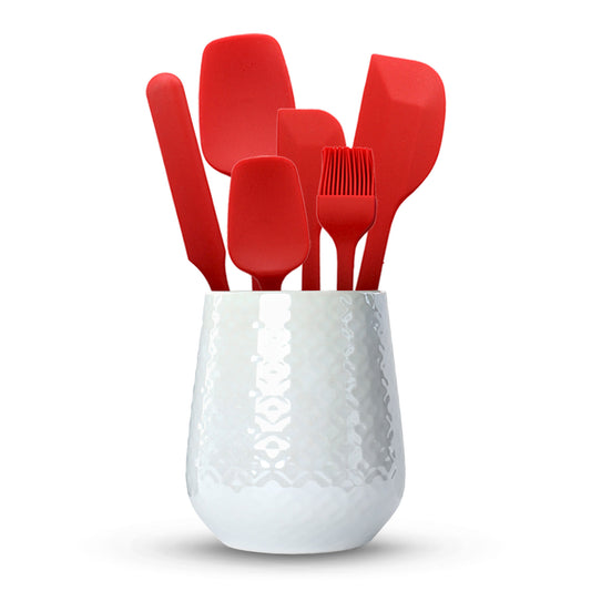 Cheer Collection Silicone Spatula Set, Silicone Spatulas For Nonstick Cookware, Cooking and Baking Sets for Kitchen, Red, 6 Pieces
