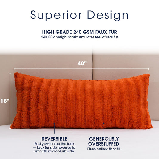 Cheer Collection Faux Fur Throw Pillow - 18" x 40" Long Decorative Body Pillow for Bed or Couch