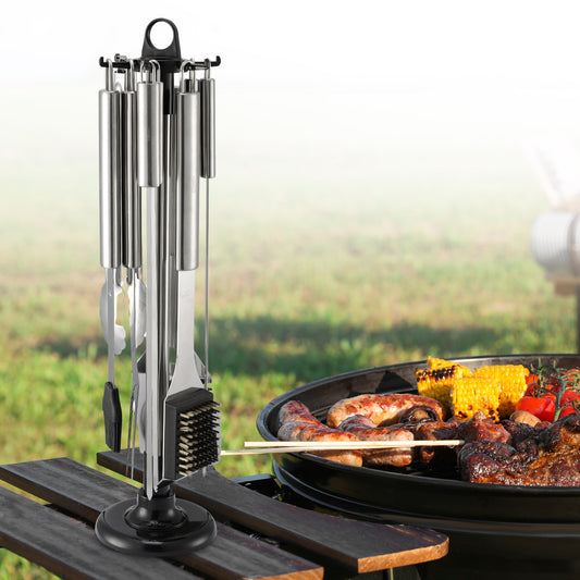 Cheer Collection Stainless Steel 10 Piece Barbecue Grill Tools Set with Storage Carousel