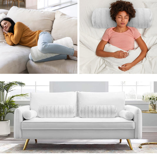 Cheer Collection Set of 2 Faux Fur Bolster Pillows, Decorative Roll Pillow