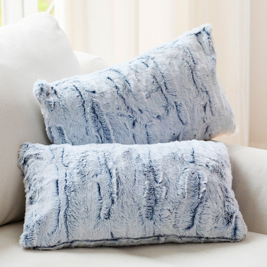 Cheer Collection Embossed Faux Fur Throw Pillows - 12" x 20" - White/Blue