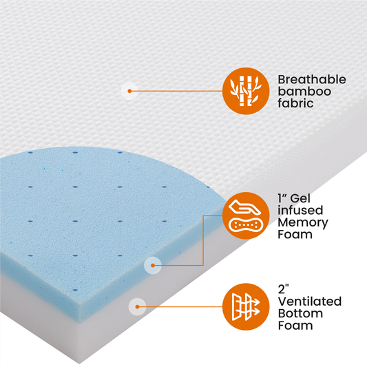 Cheer Collection 3 Inch Gel Infused Memory Foam Bed Topper with Washable Bamboo Cover