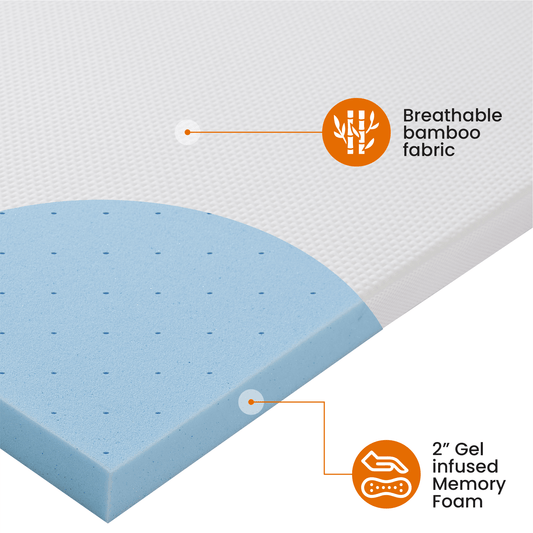 Cheer Collection 2 Inch Gel Infused Memory Foam Bed Topper with Washable Bamboo Cover