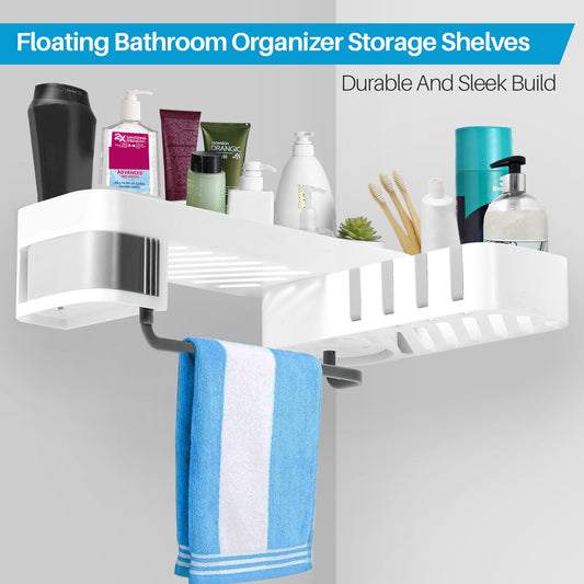Cheer Collection Floating Bathroom Organizer & Shower Caddy with Towel Hanger for Bath or Kitchen - No Drilling Required