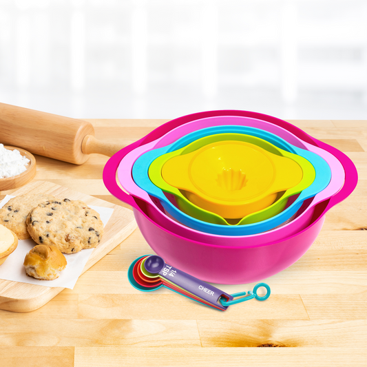 Cheer Collection 10 Piece Nested Bowl Set with Mixing Bowls, Juicer, Measuring Spoons, Sieve