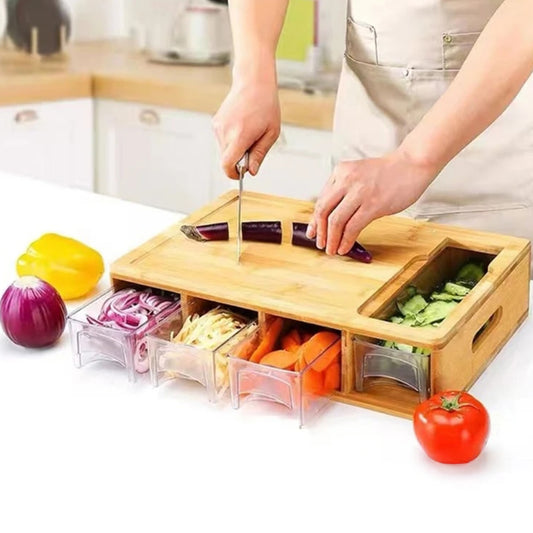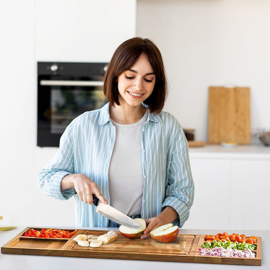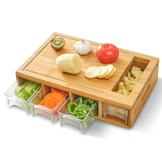 Cheer Collection Bamboo Cutting Board with 4 Slide-Out Storage Trays