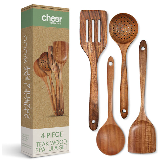 Cheer Collection Premium Teak Wood Spatula Set – Elegant 4-Piece Handcrafted Utensils for Effortless Cooking