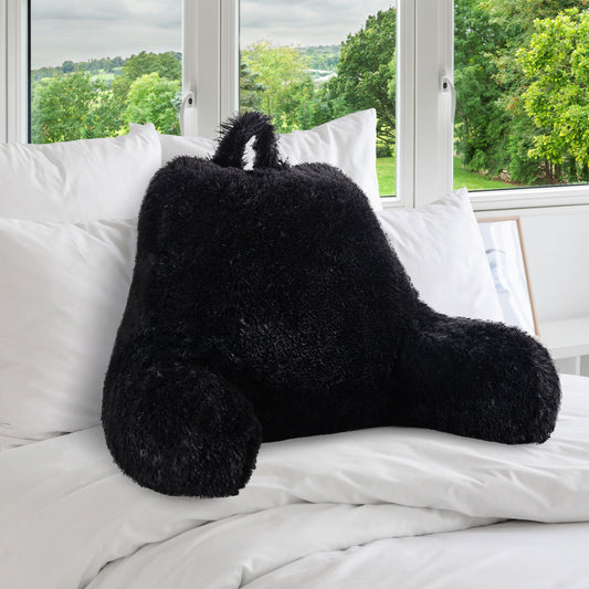 Cheer Collection Fluffy Reading Pillow - Long Shaggy Hair TV and Gaming Pillow with Armrest