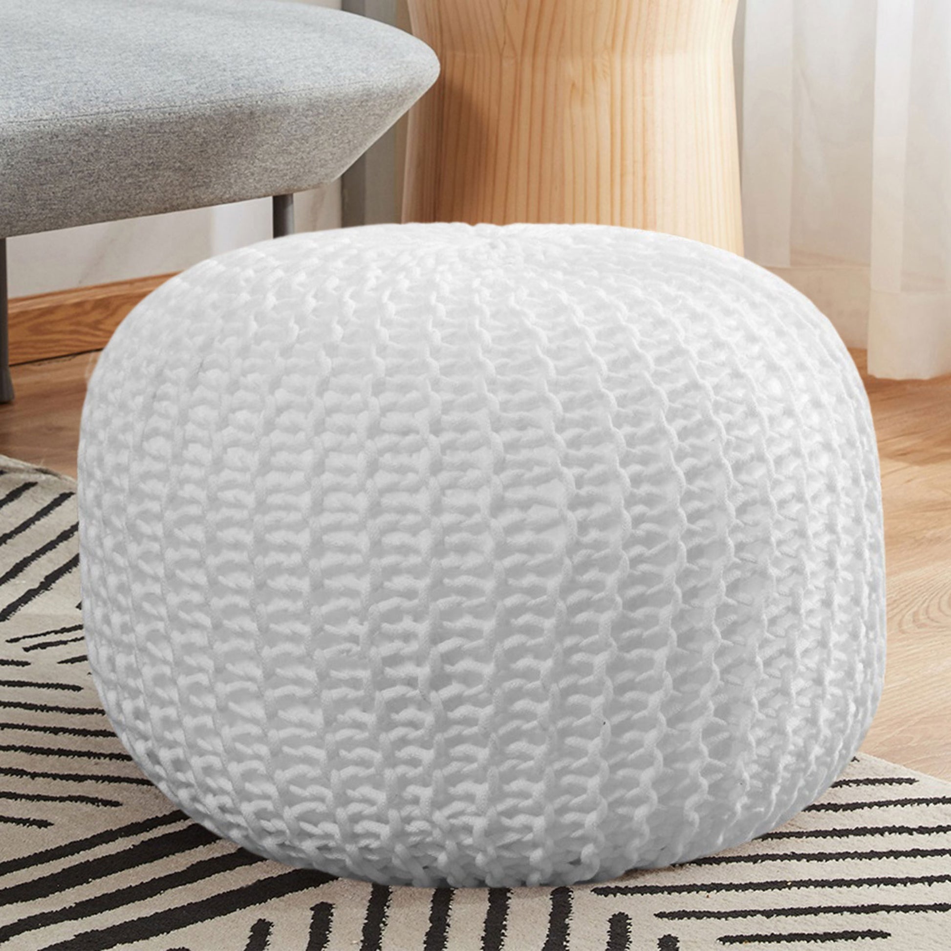 Cheer Collection 18" Round Pouf Ottoman - Chunky Hand-Knit Decorative and Comfortable Foot Rest