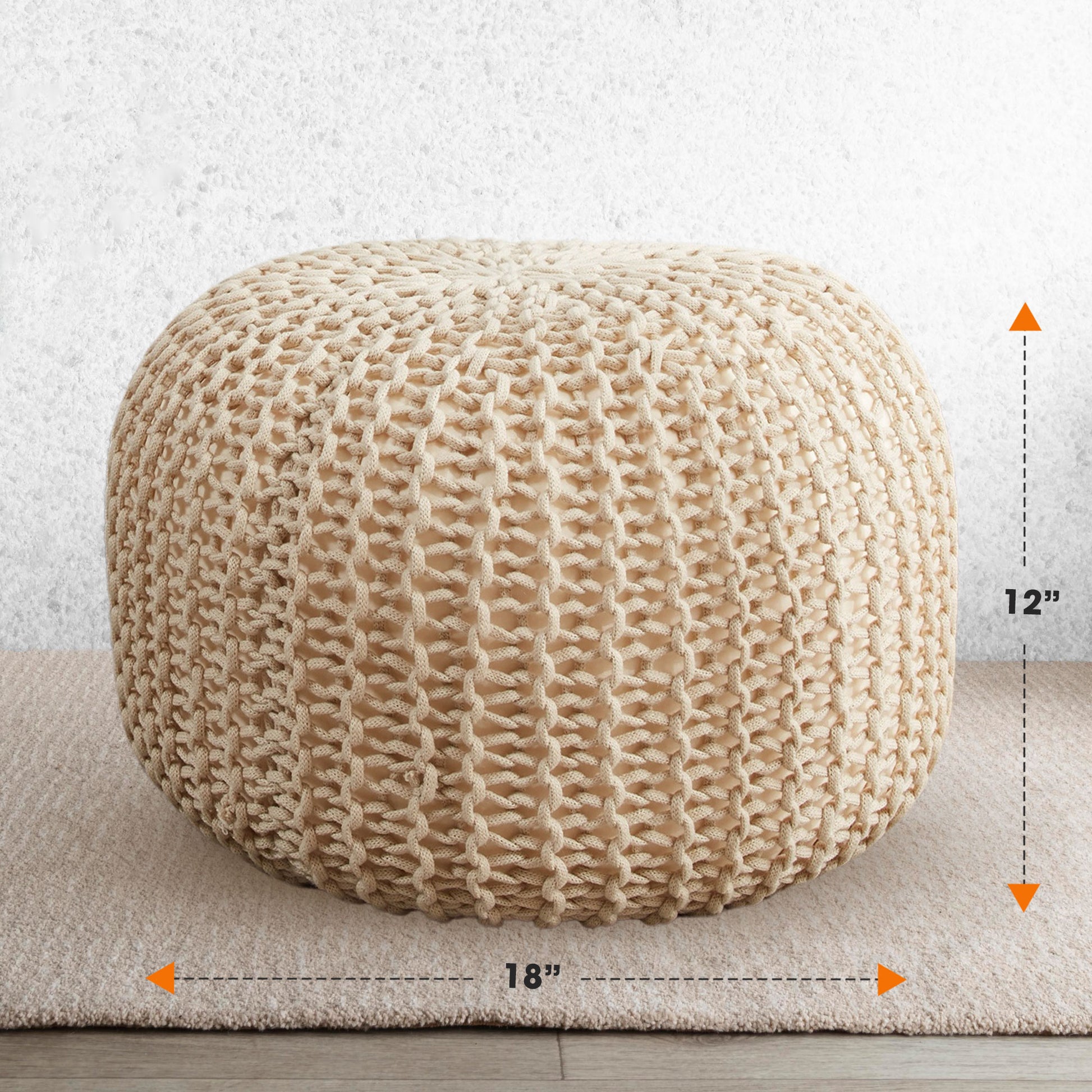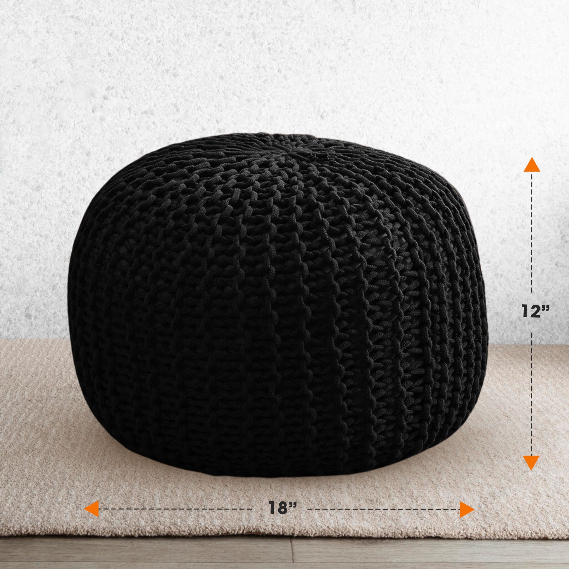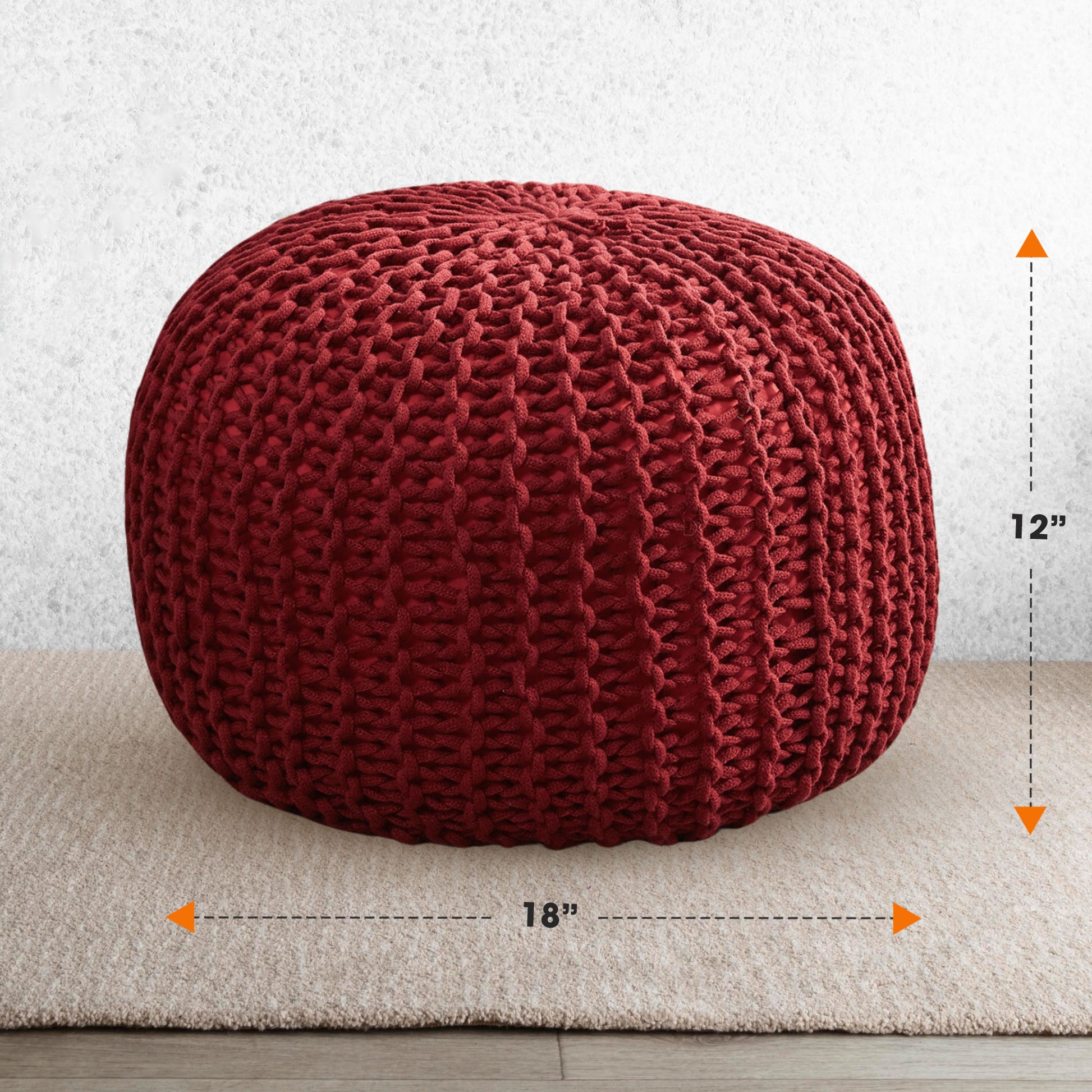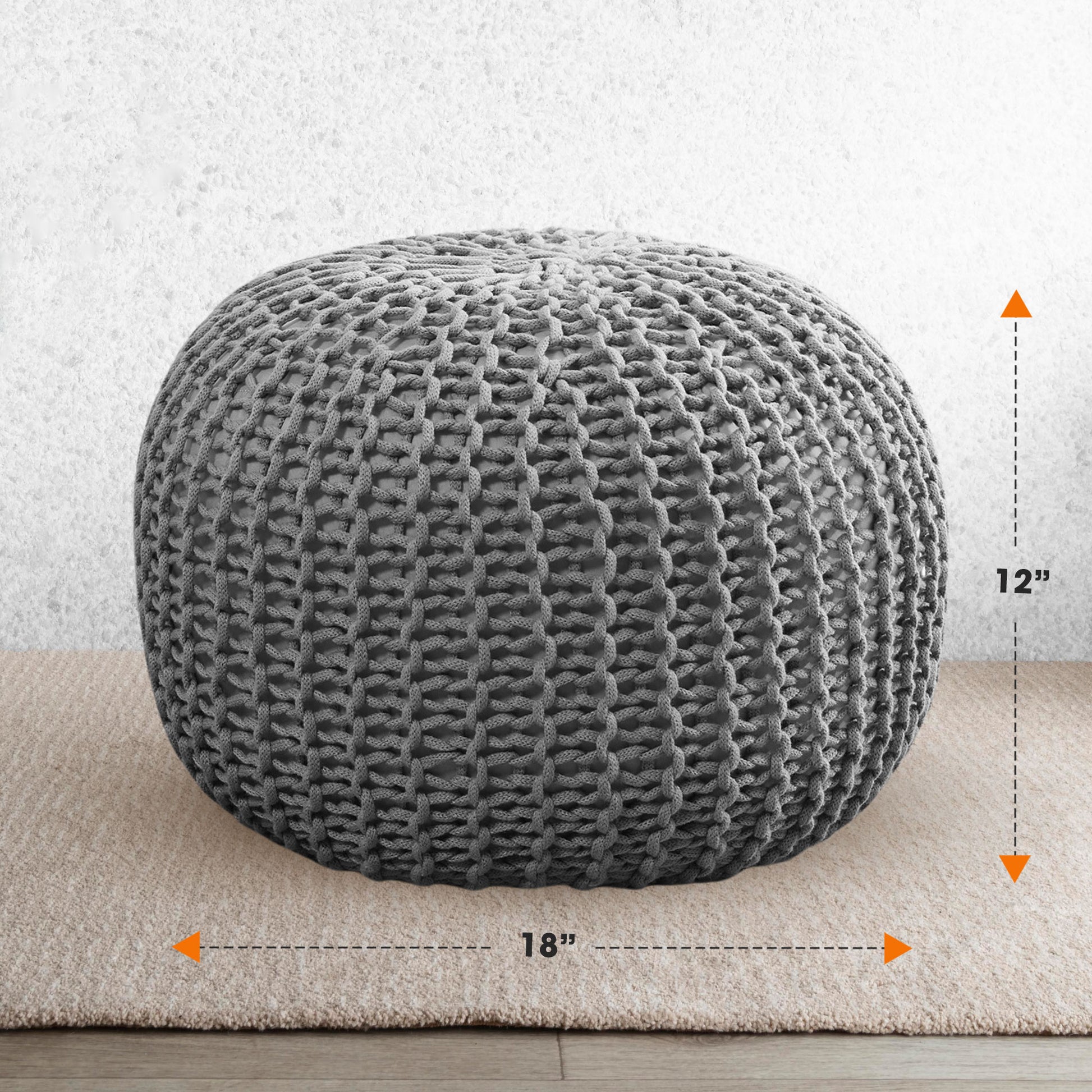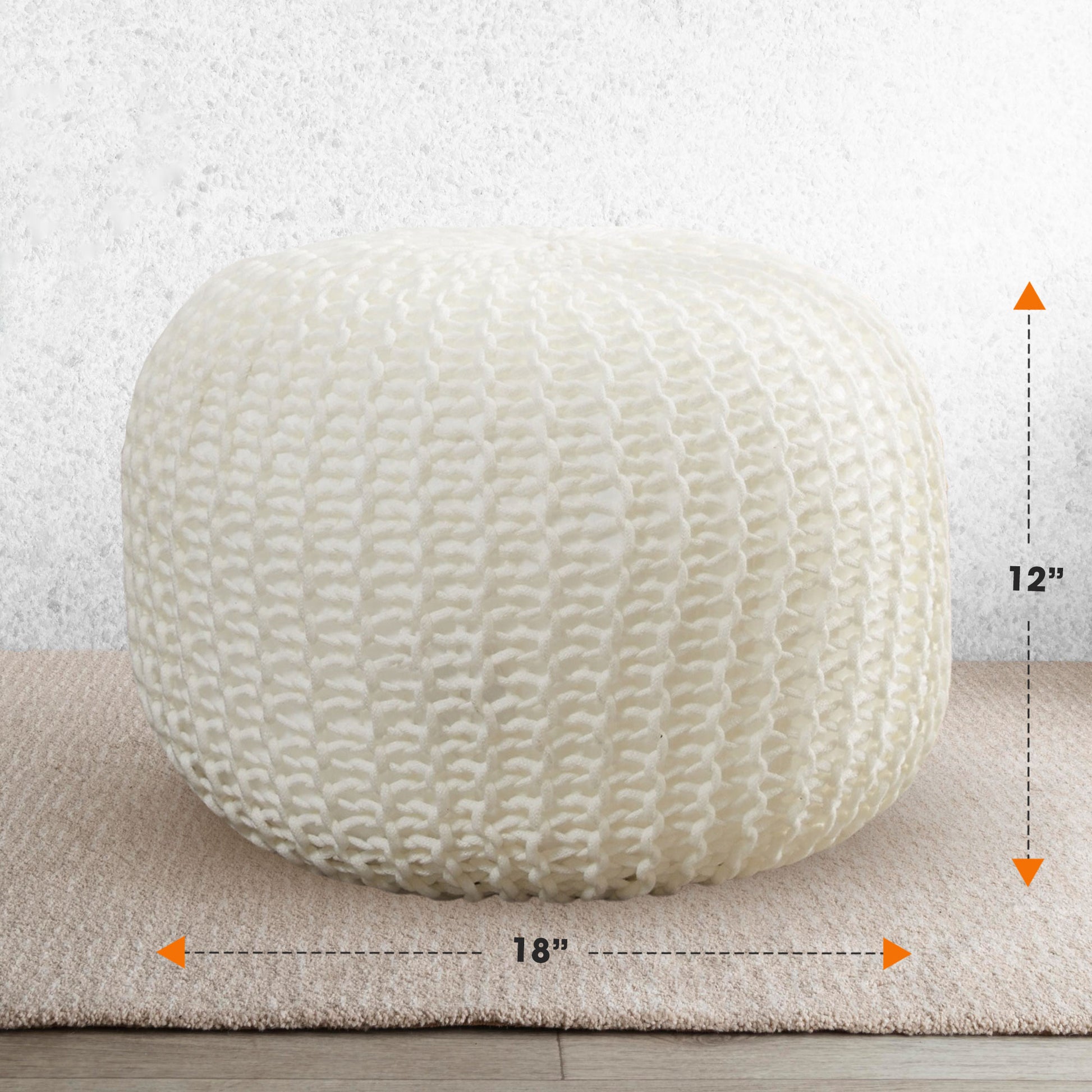 Cheer Collection 18" Round Pouf Ottoman - Chunky Hand-Knit Decorative and Comfortable Foot Rest