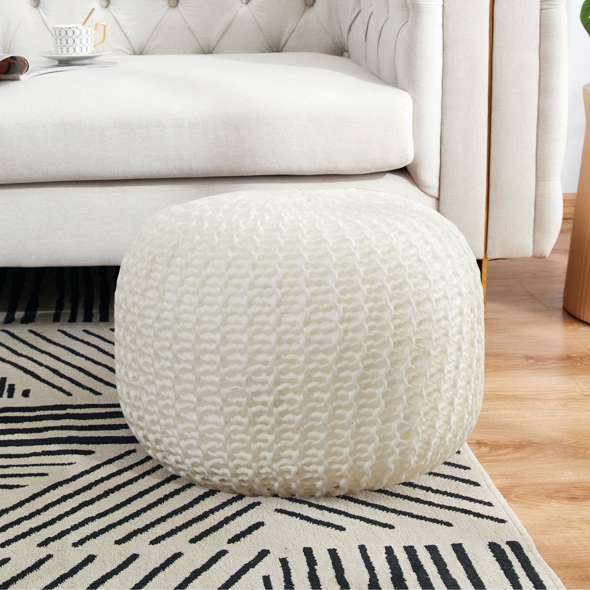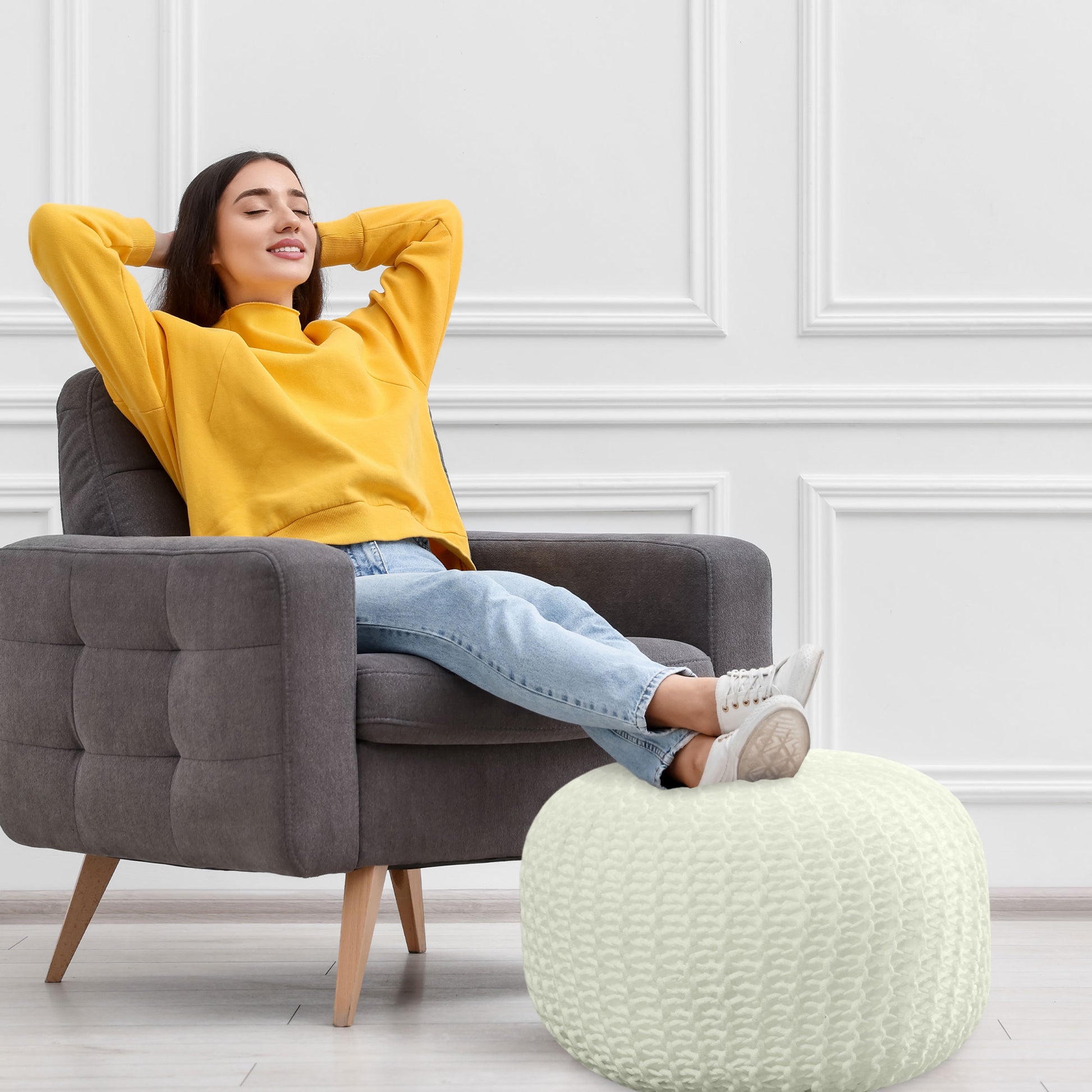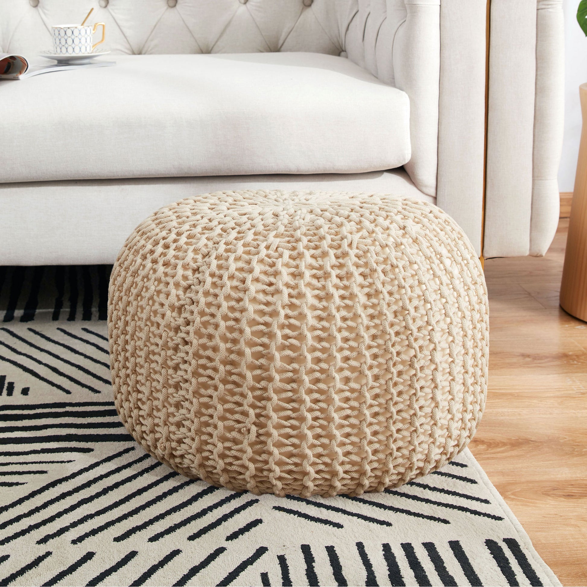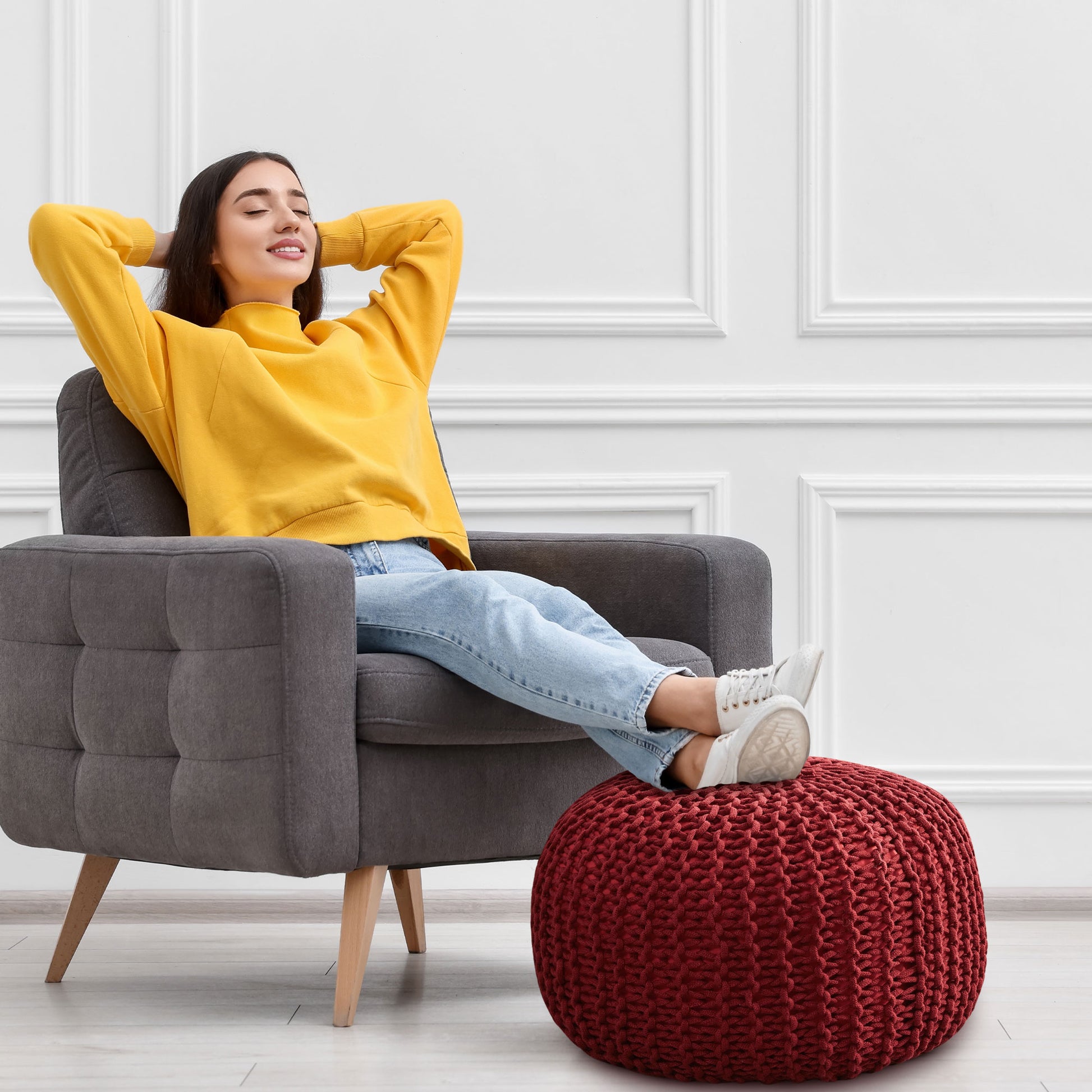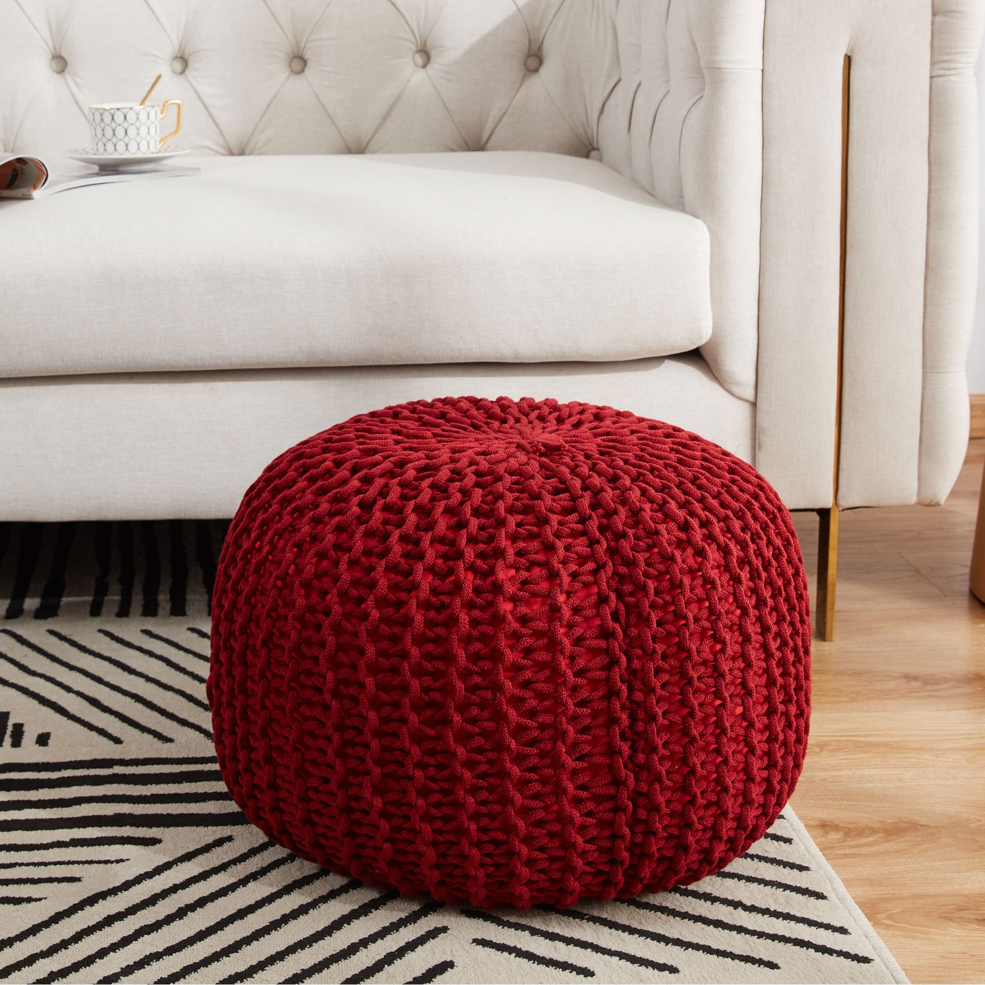Cheer Collection 18" Round Pouf Ottoman - Chunky Hand-Knit Decorative and Comfortable Foot Rest