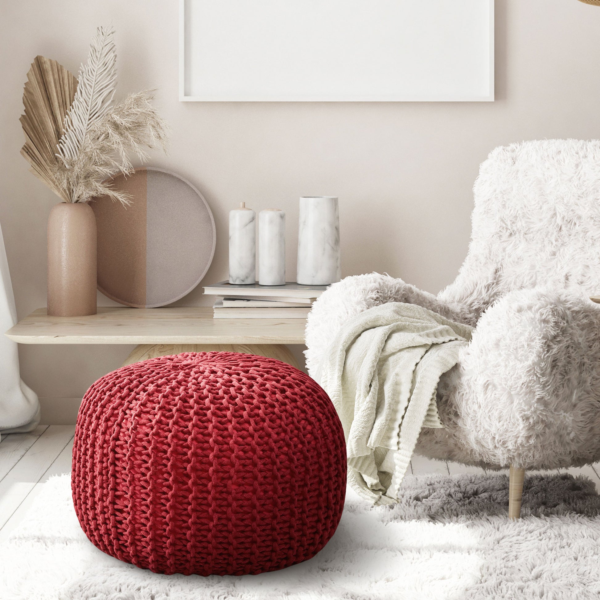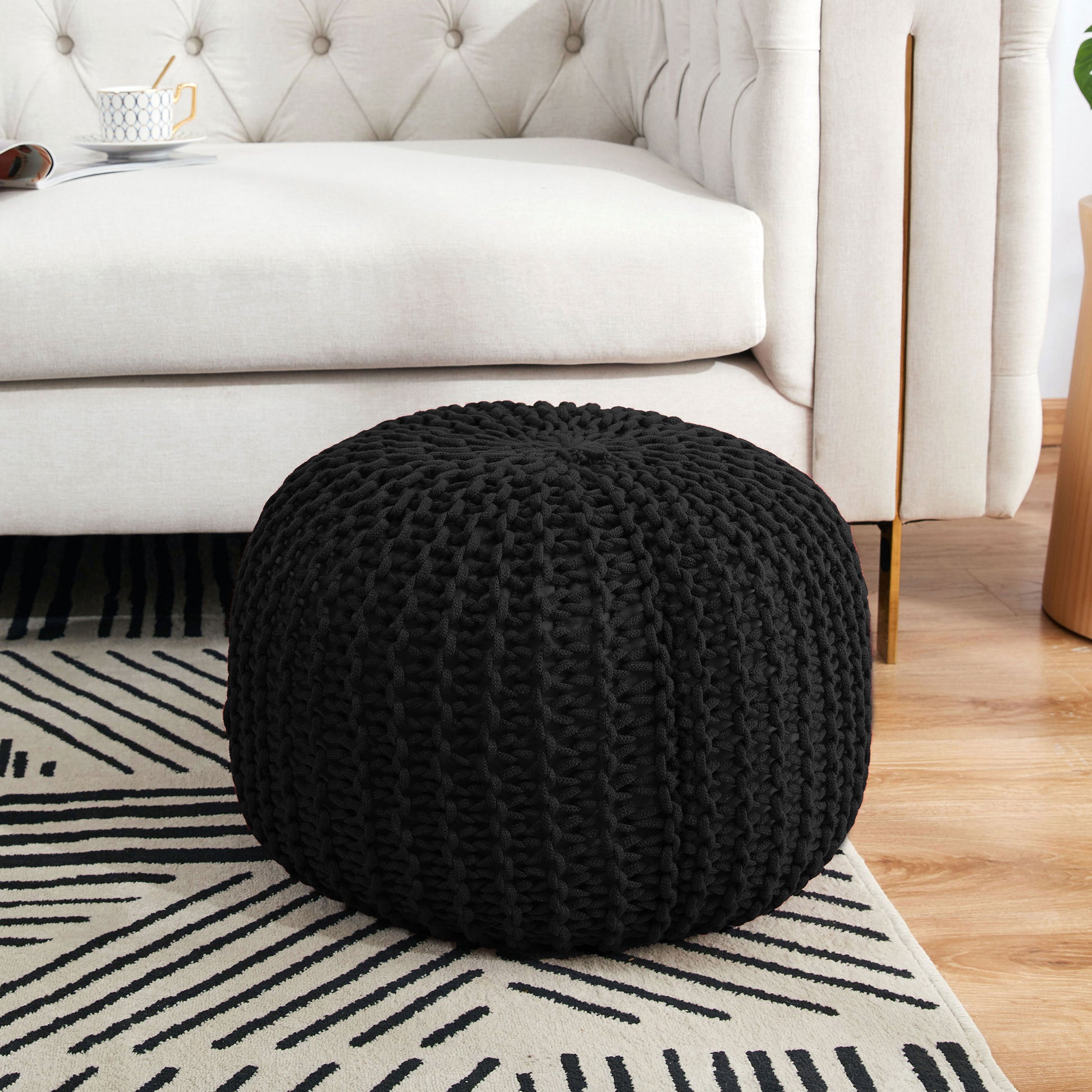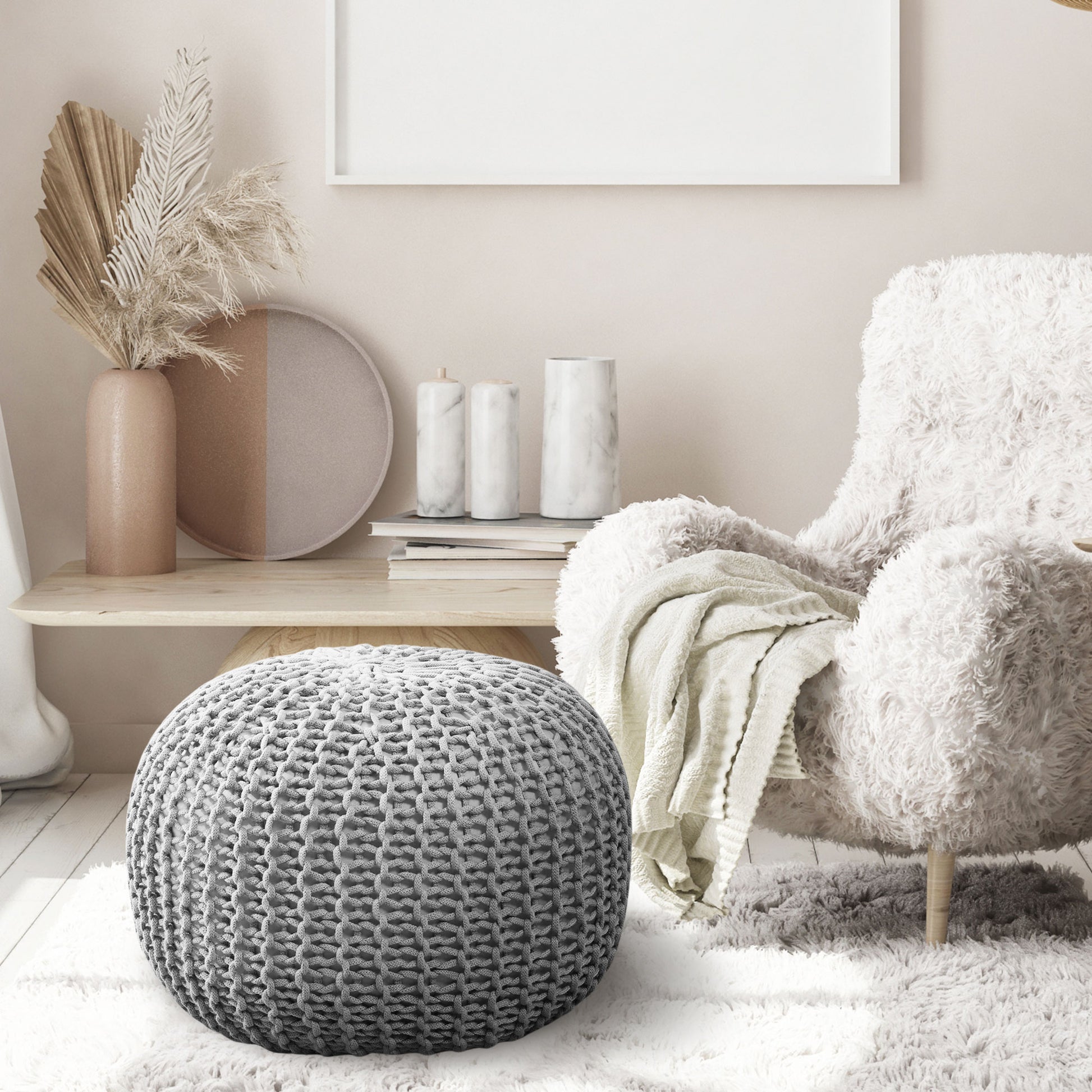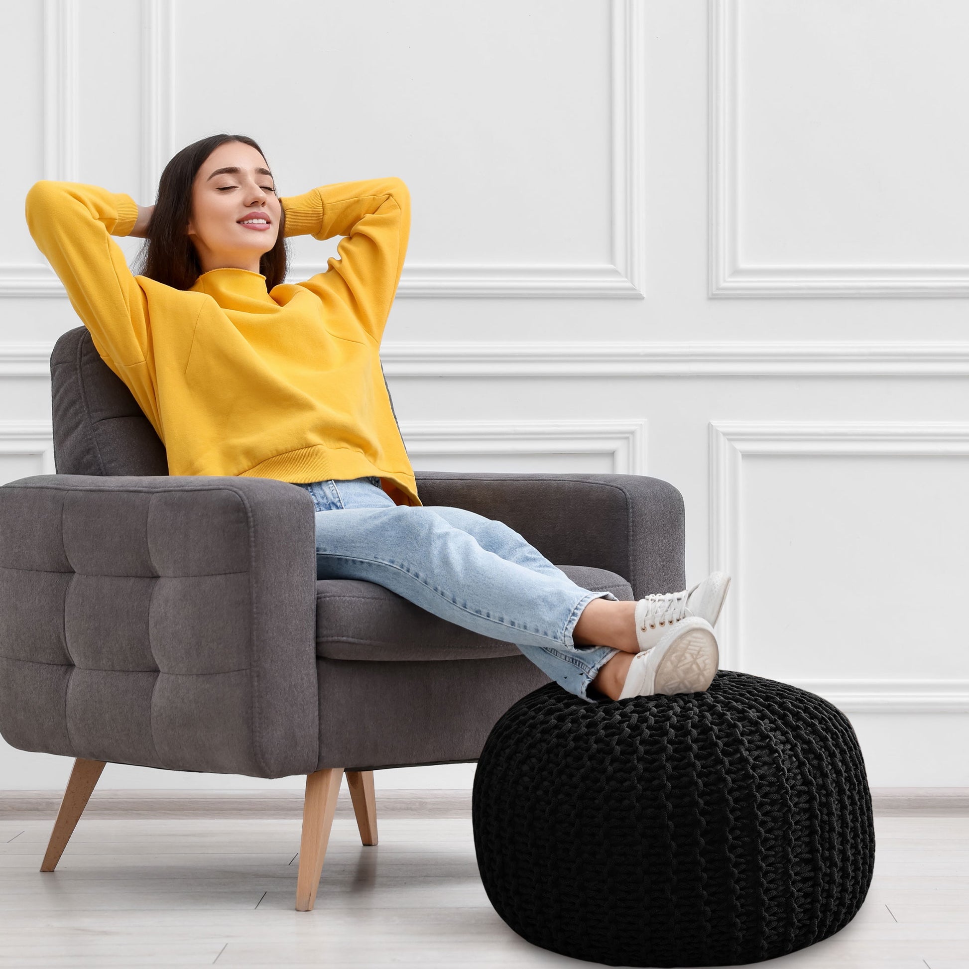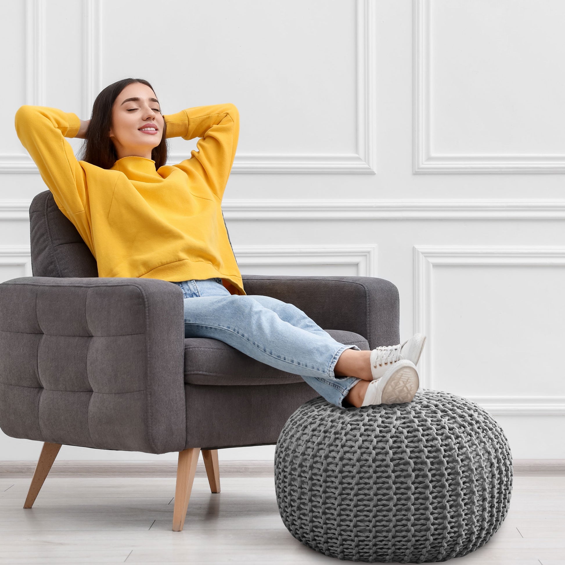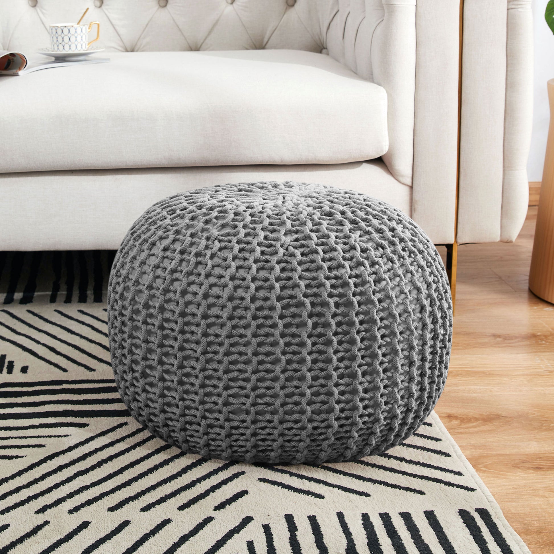 Cheer Collection 18" Round Pouf Ottoman - Chunky Hand-Knit Decorative and Comfortable Foot Rest