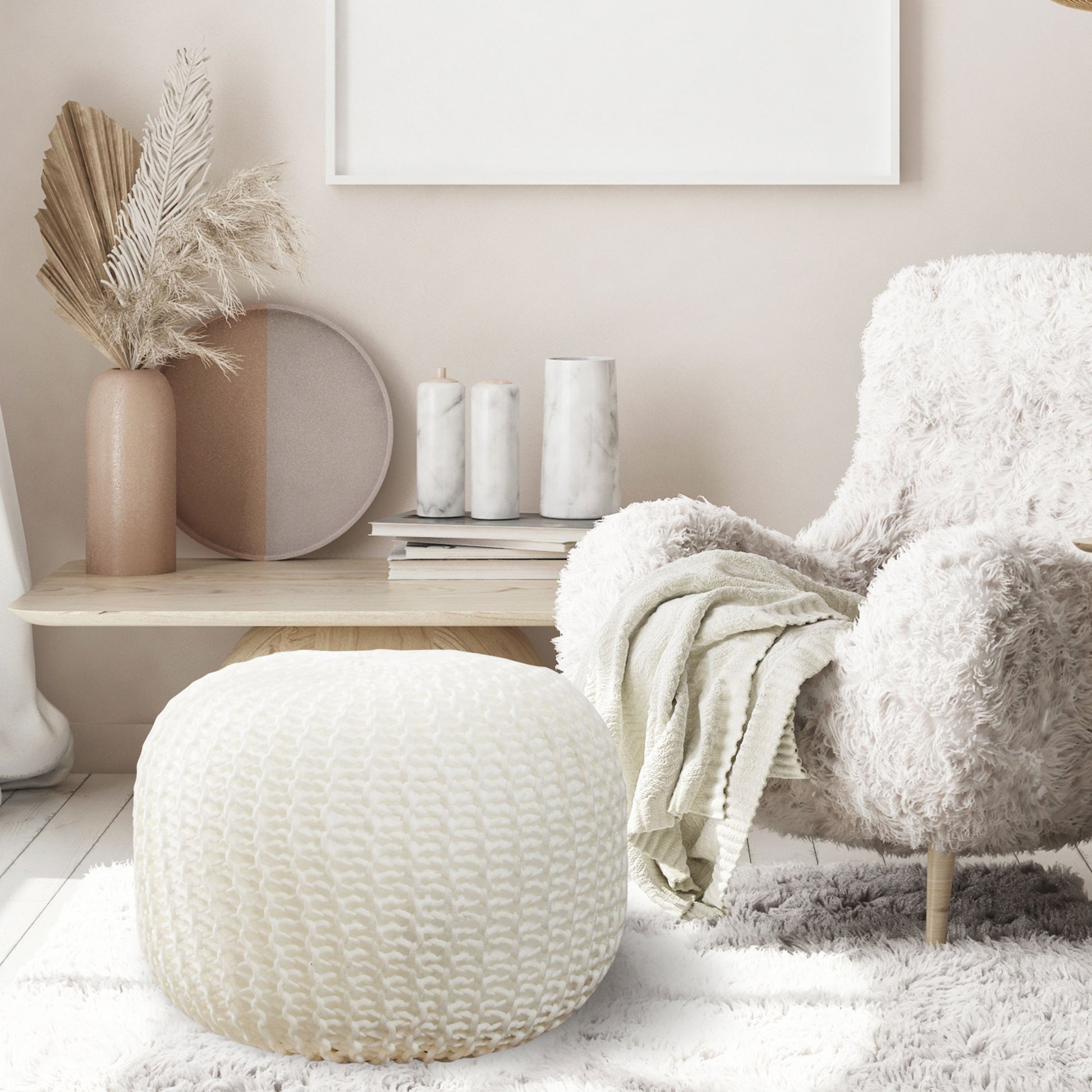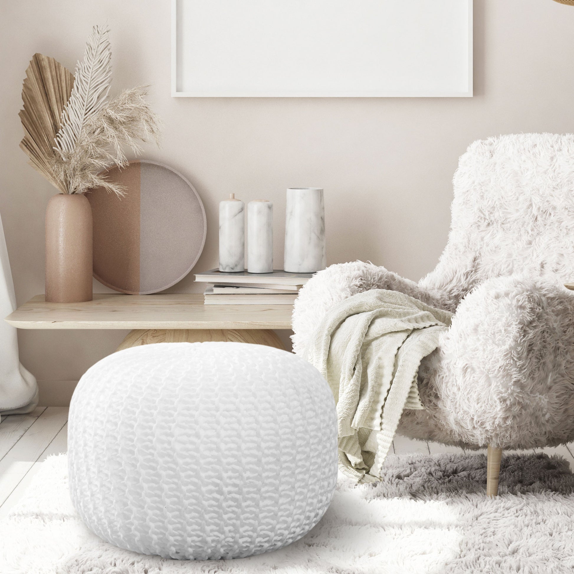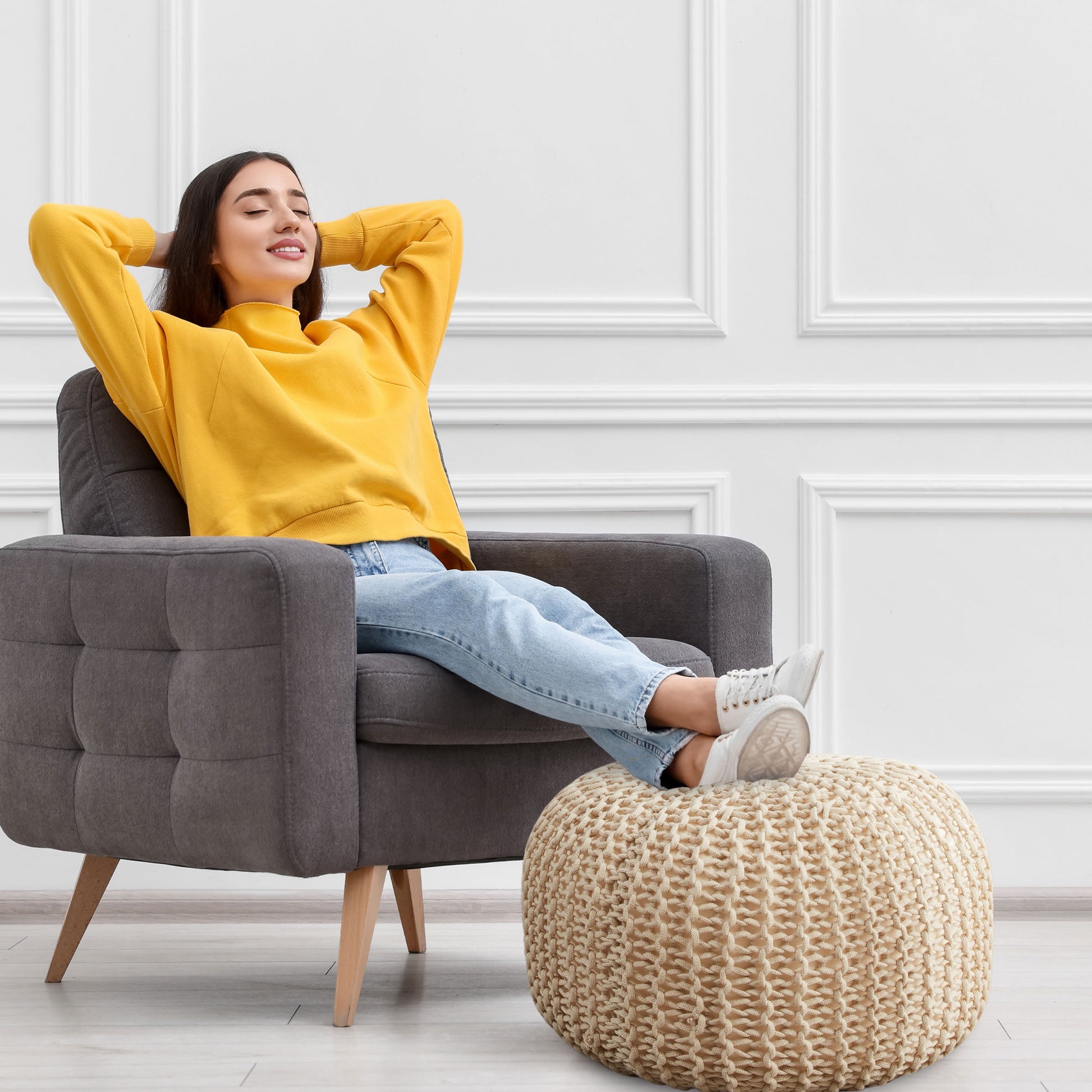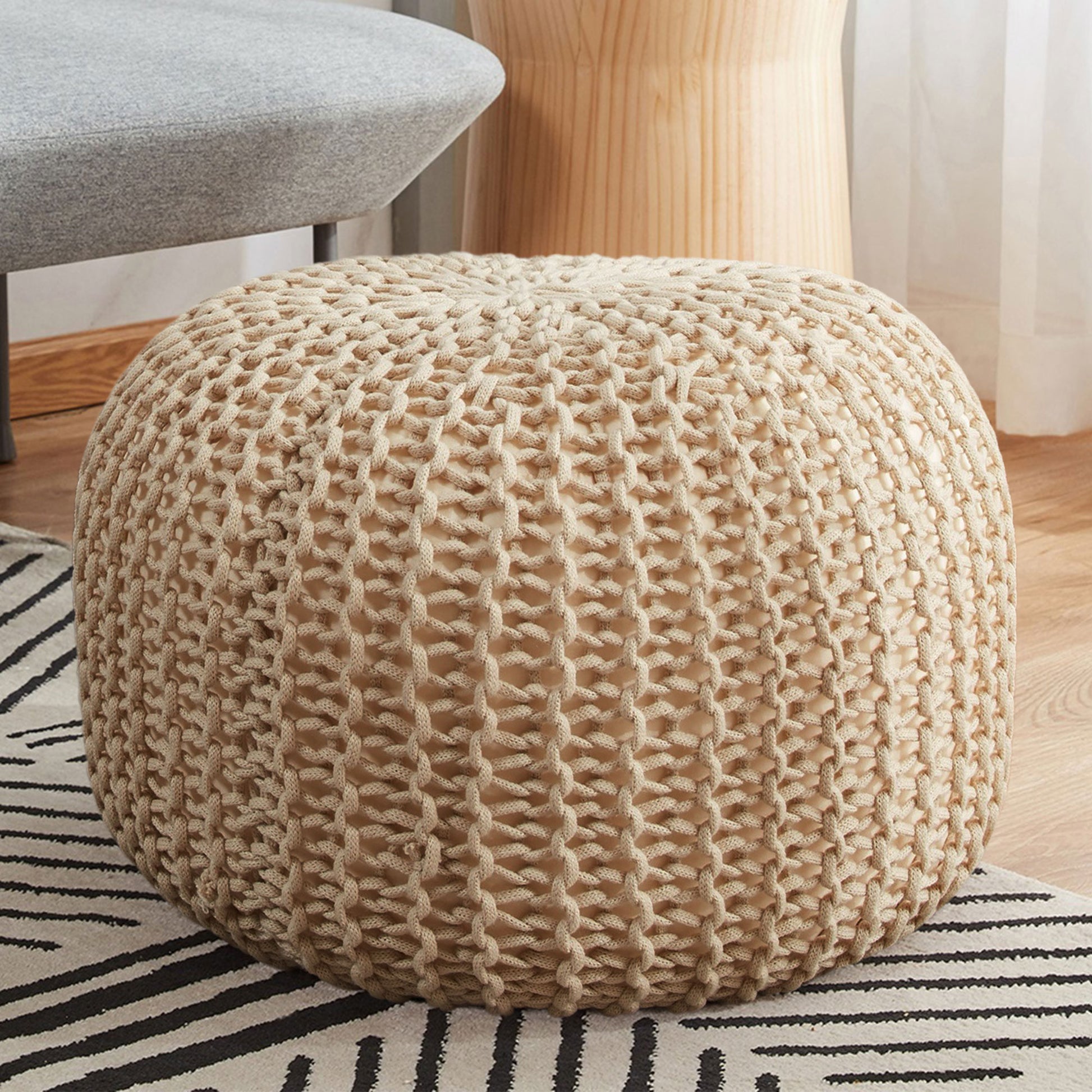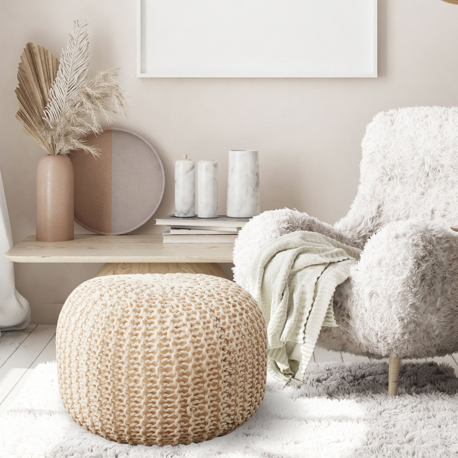 Cheer Collection 18" Round Pouf Ottoman - Chunky Hand-Knit Decorative and Comfortable Foot Rest