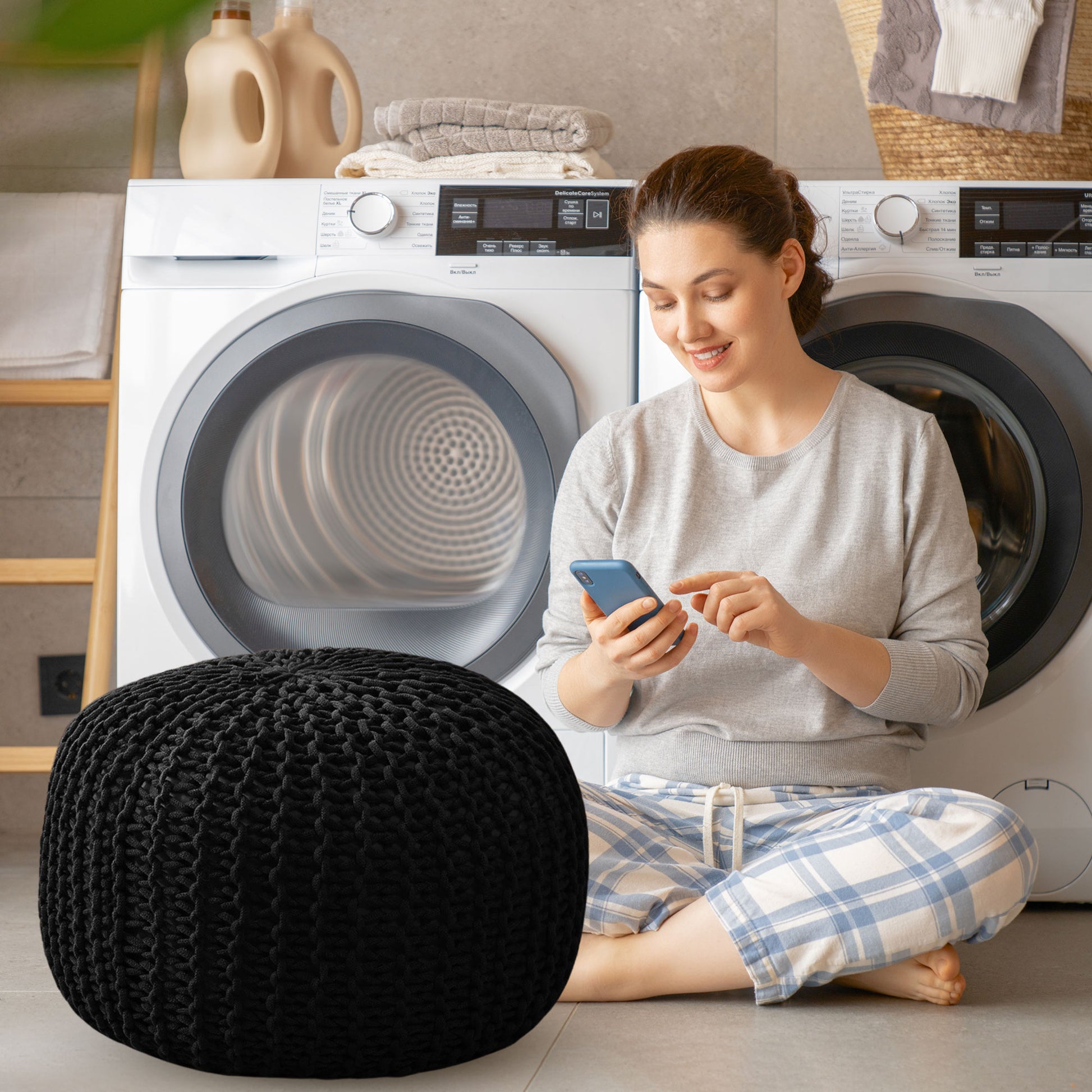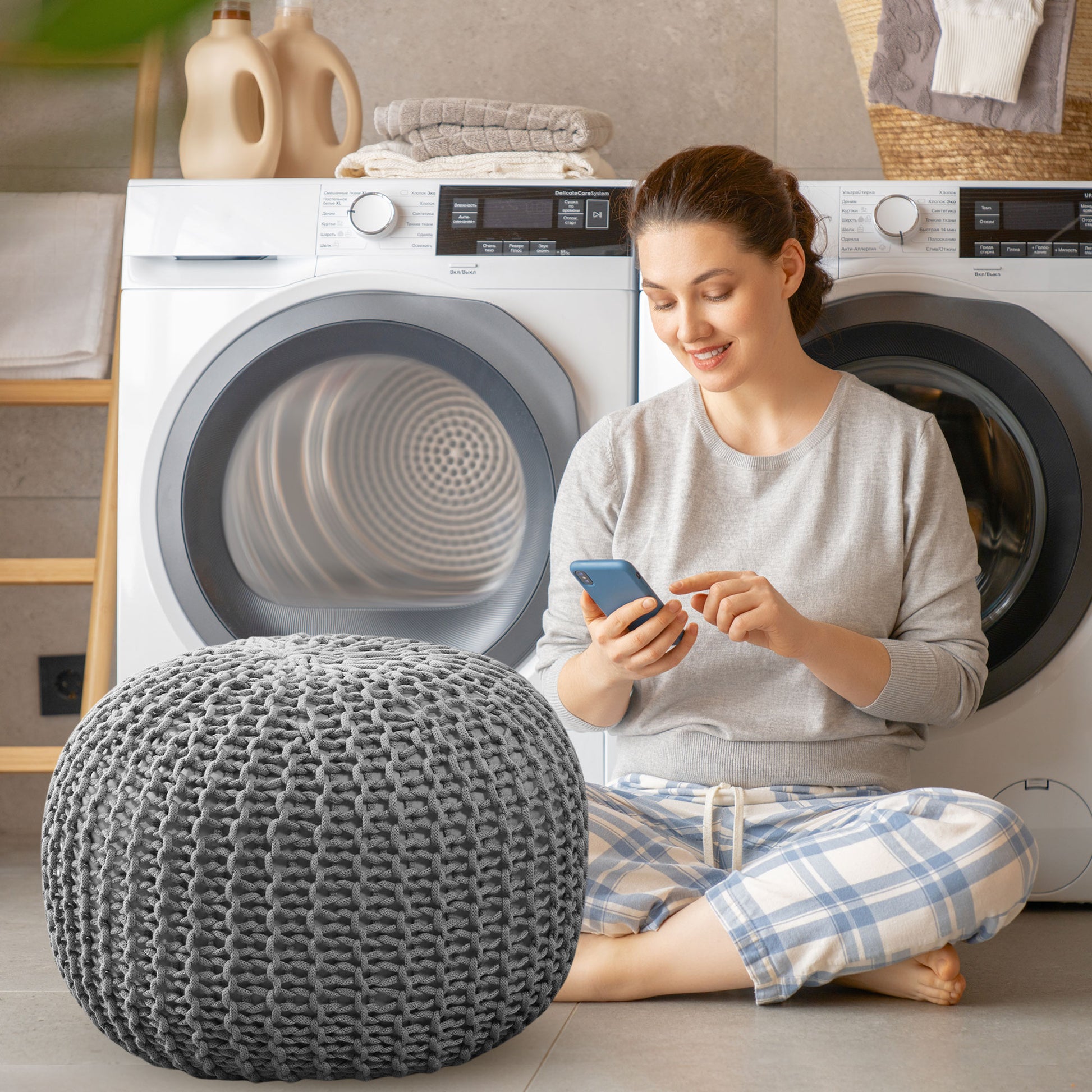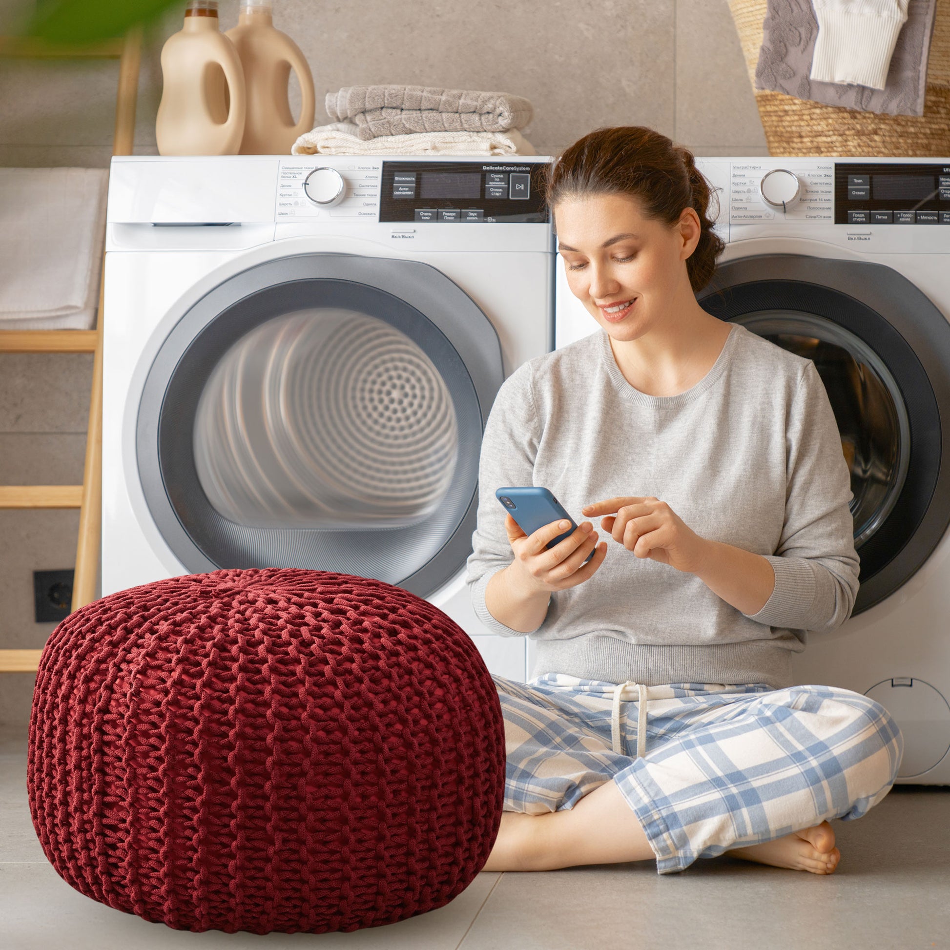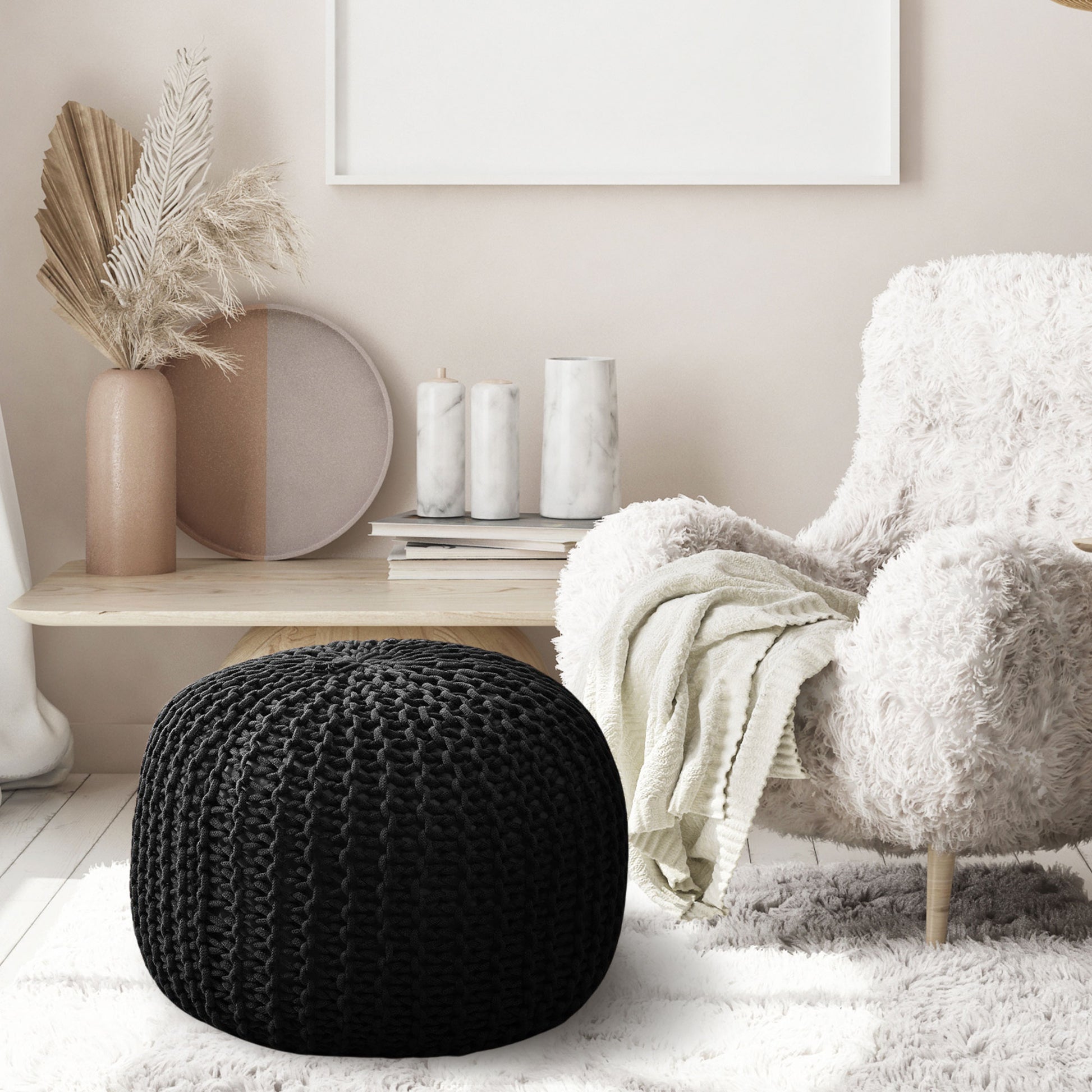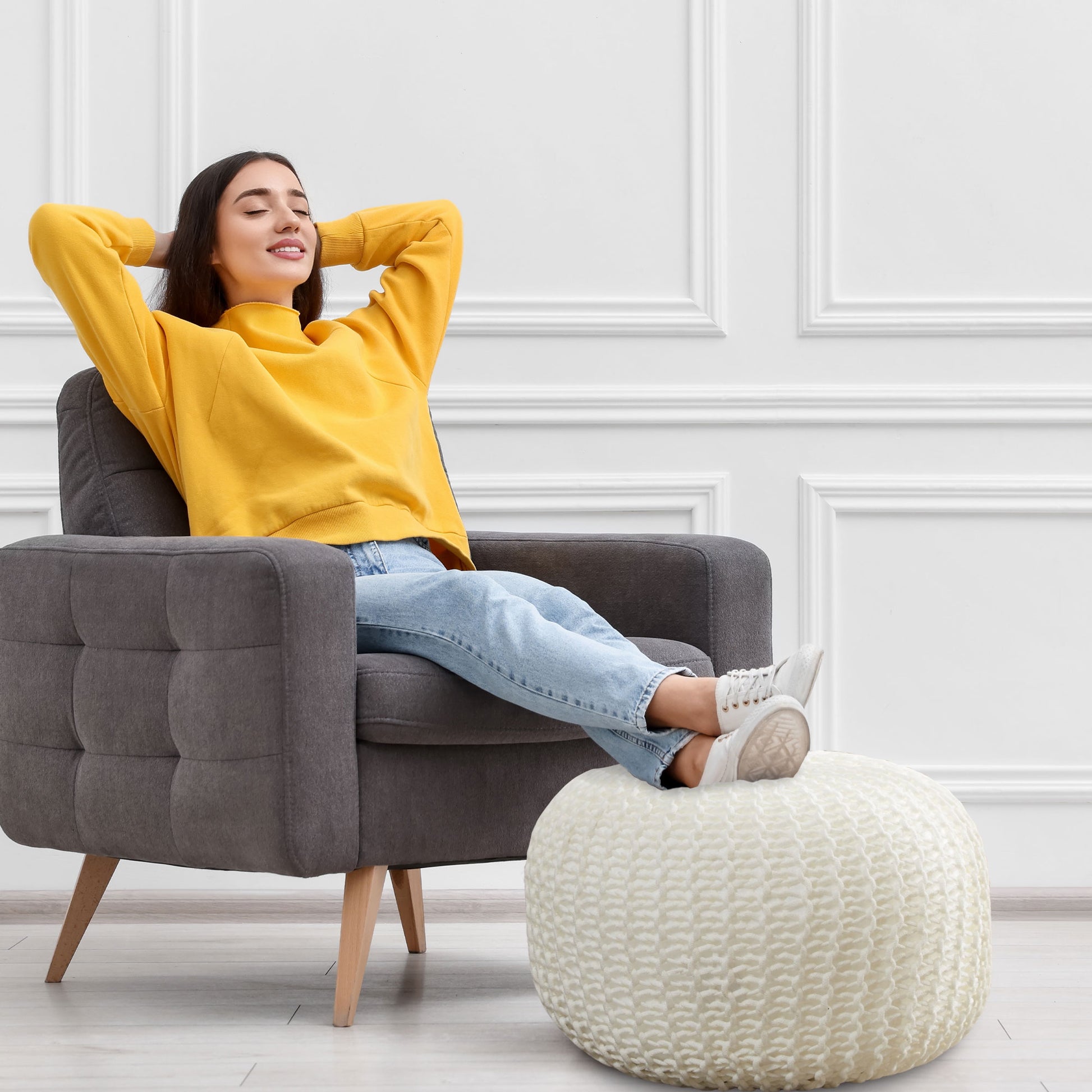 Cheer Collection 18" Round Pouf Ottoman - Chunky Hand-Knit Decorative and Comfortable Foot Rest