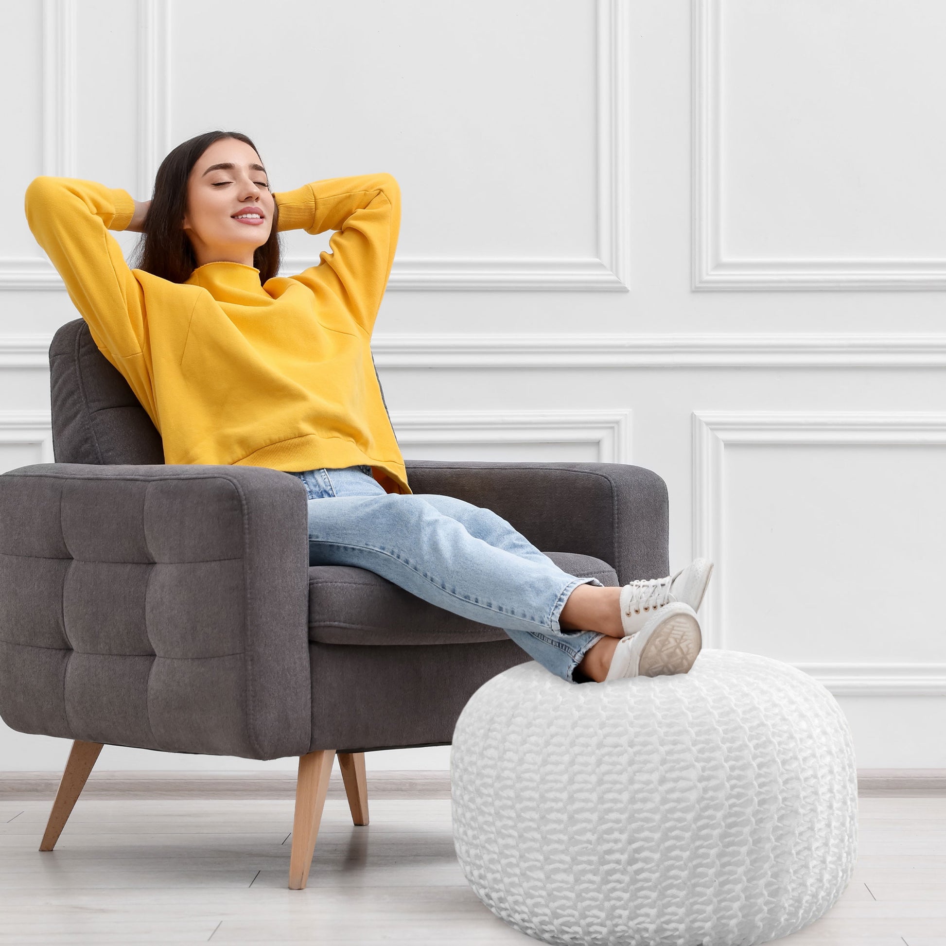 - Poufs are great as a footrest or additional seating while watching TV or entertaining guests