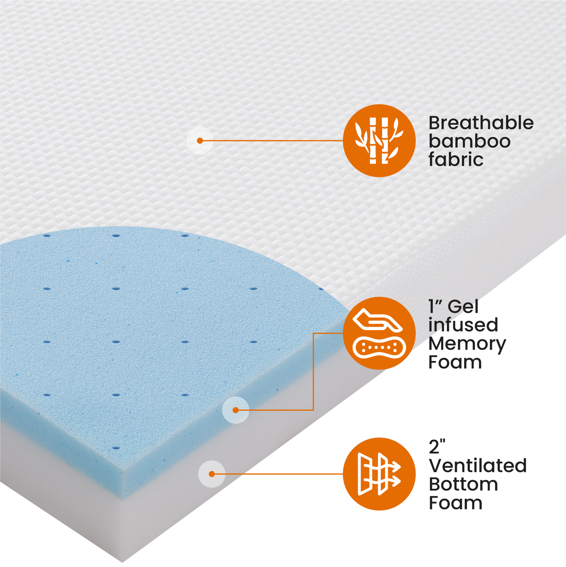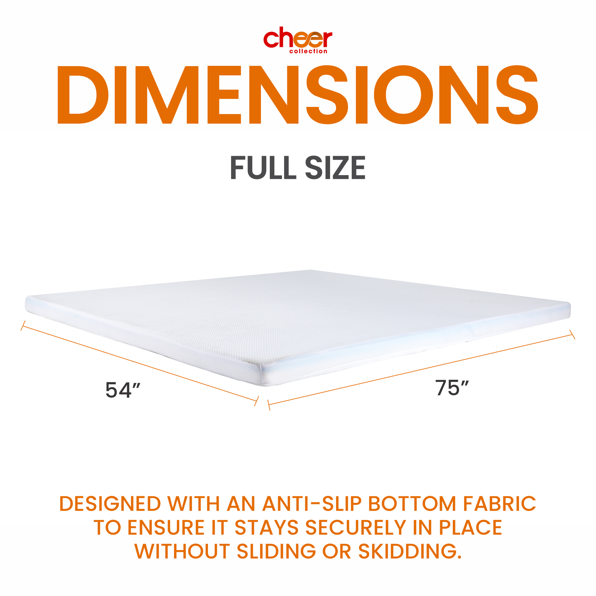 Cheer Collection 3 Inch Gel Infused Memory Foam Bed Topper with Washable Bamboo Cover
