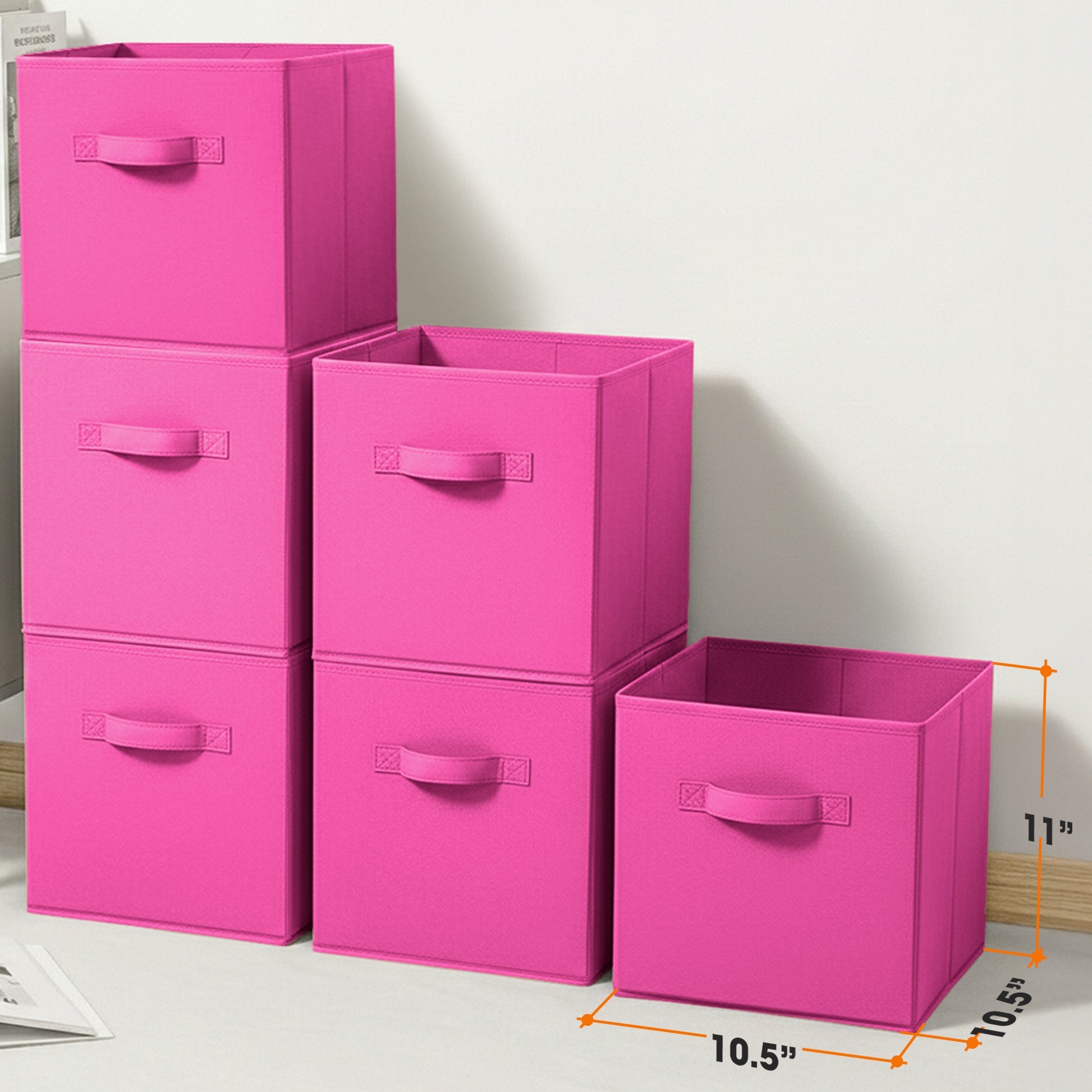 Cheer Collection Fabric Storage Cubes with Handles 6 Pack Collapsible Shelf Organizer Bins