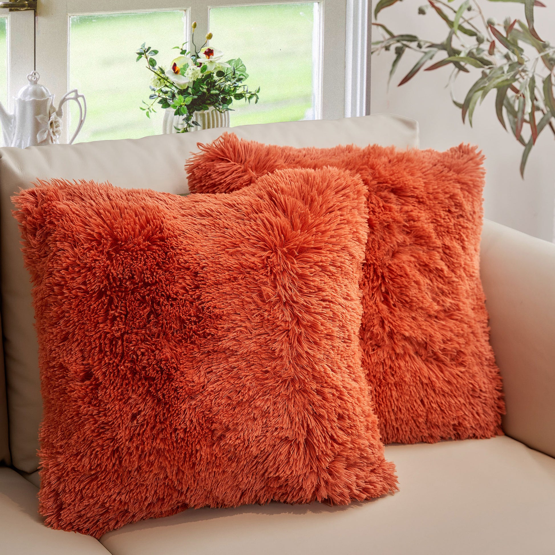 Cheer Collection Set of 2 Shaggy Long Hair Throw Pillows | Super Soft and Plush Faux Fur Accent Pillows - 18 x 18 inches
