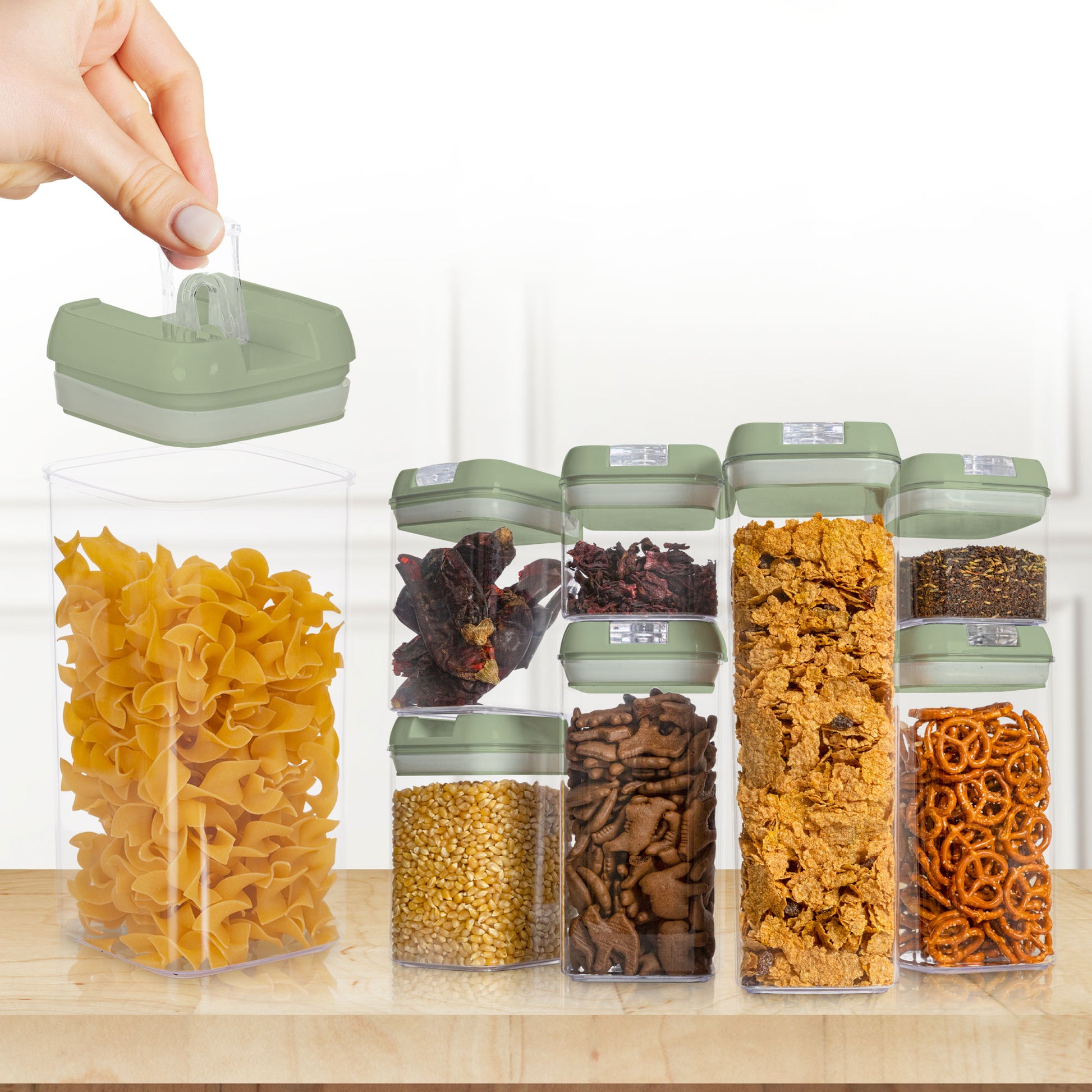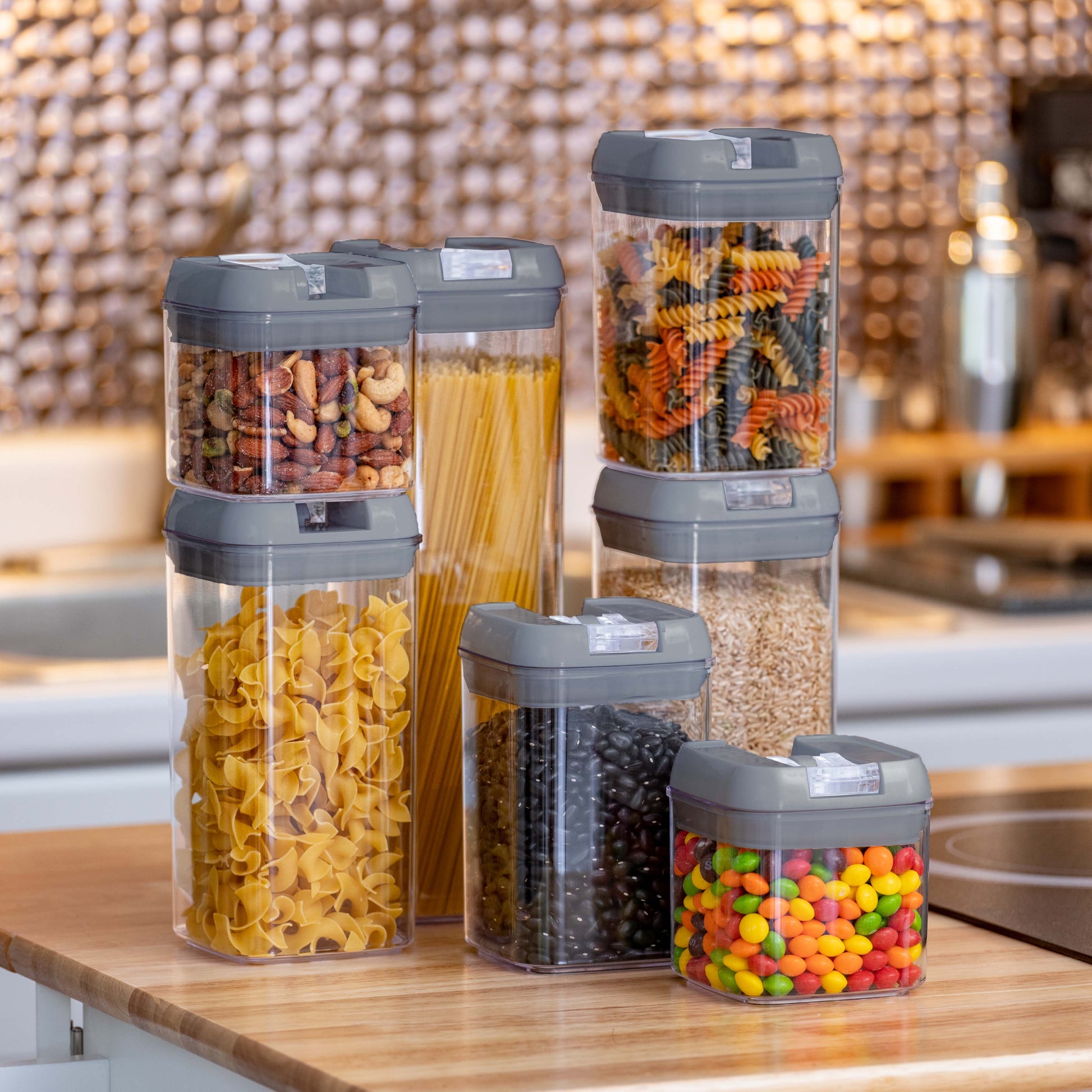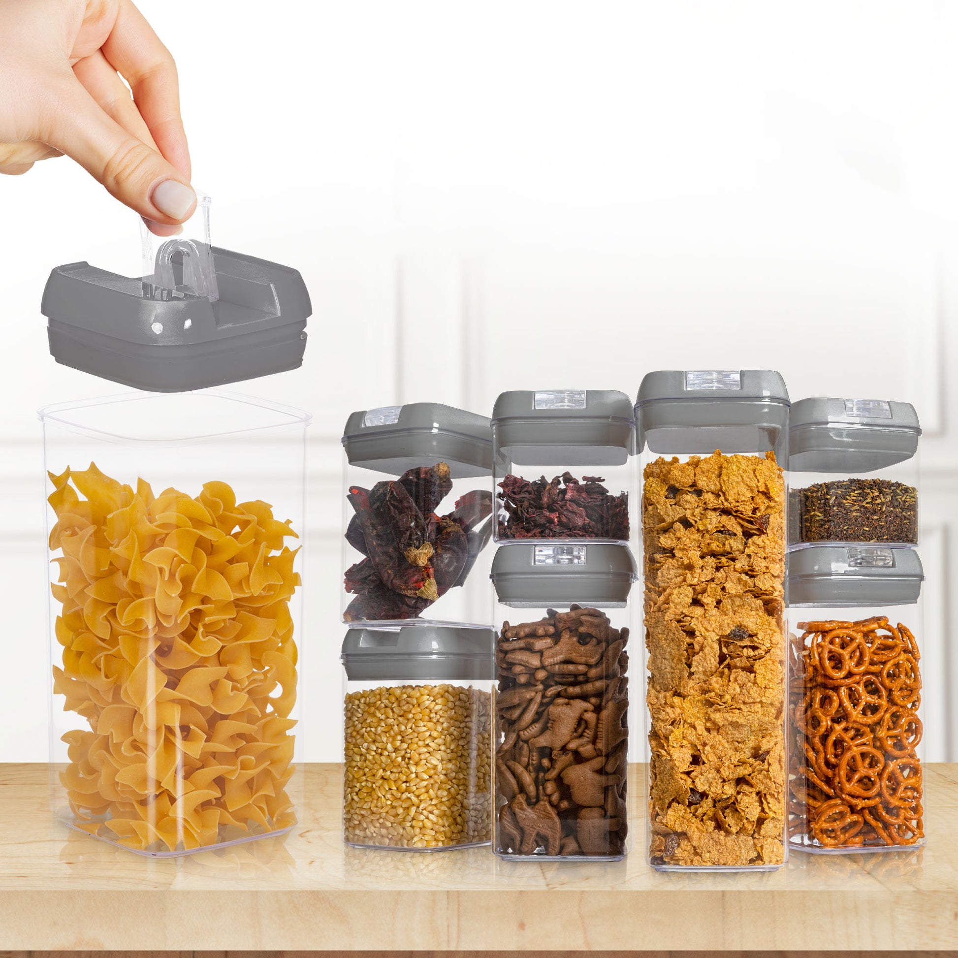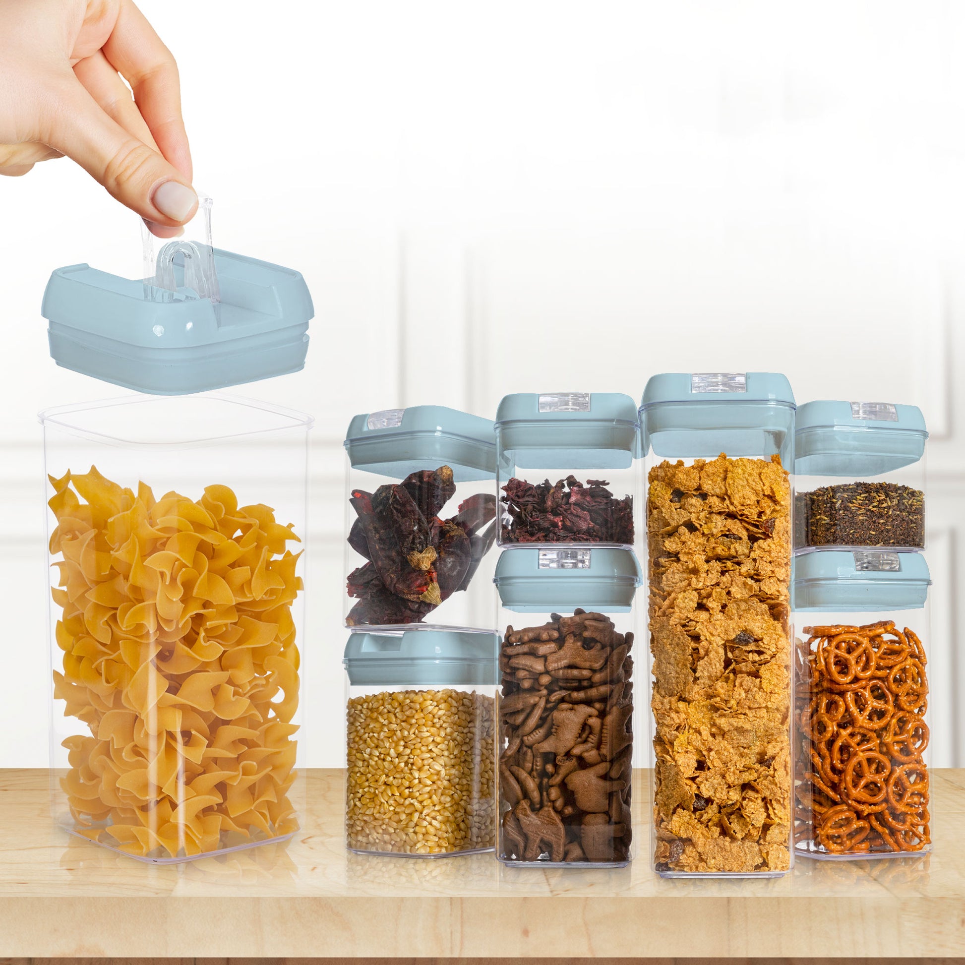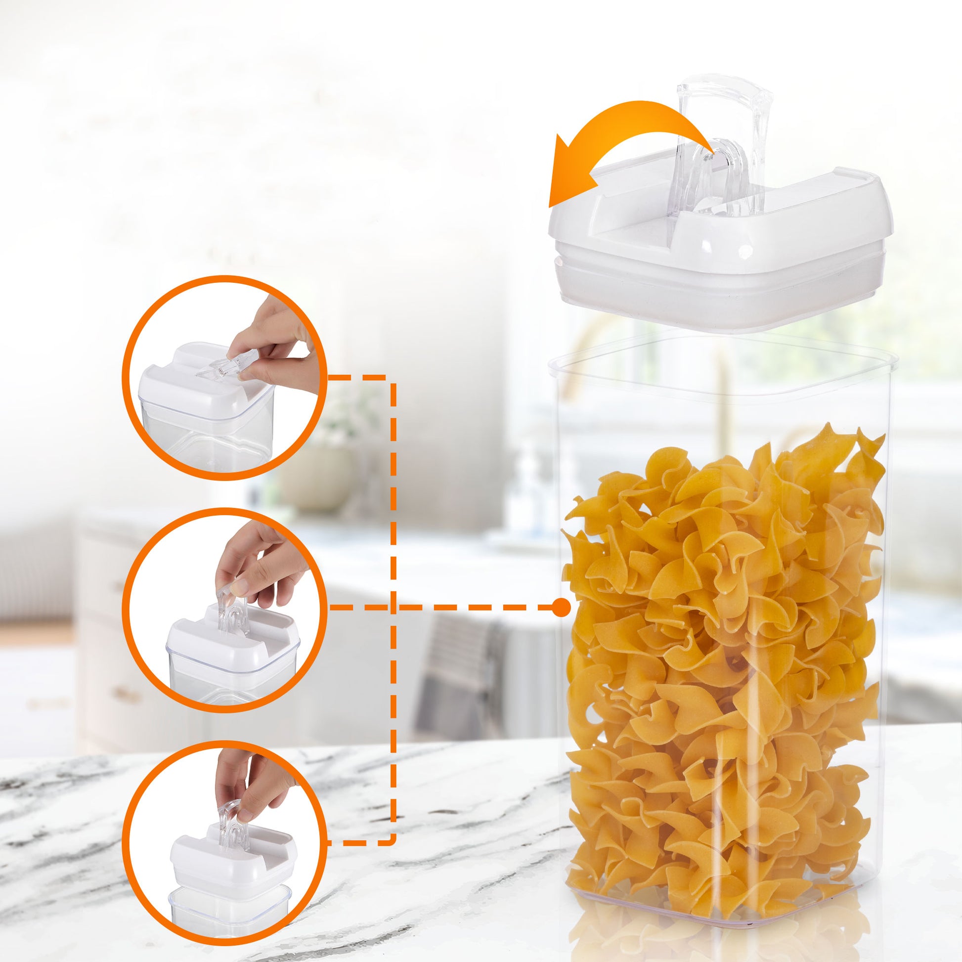 - KEEPS FOOD FRESH - Kitchen storage bins are perfect for storing cereal, pasta, snacks, cookies, flour, sugar, rice, beans and other dry foods, and maintains freshness for long periods of time