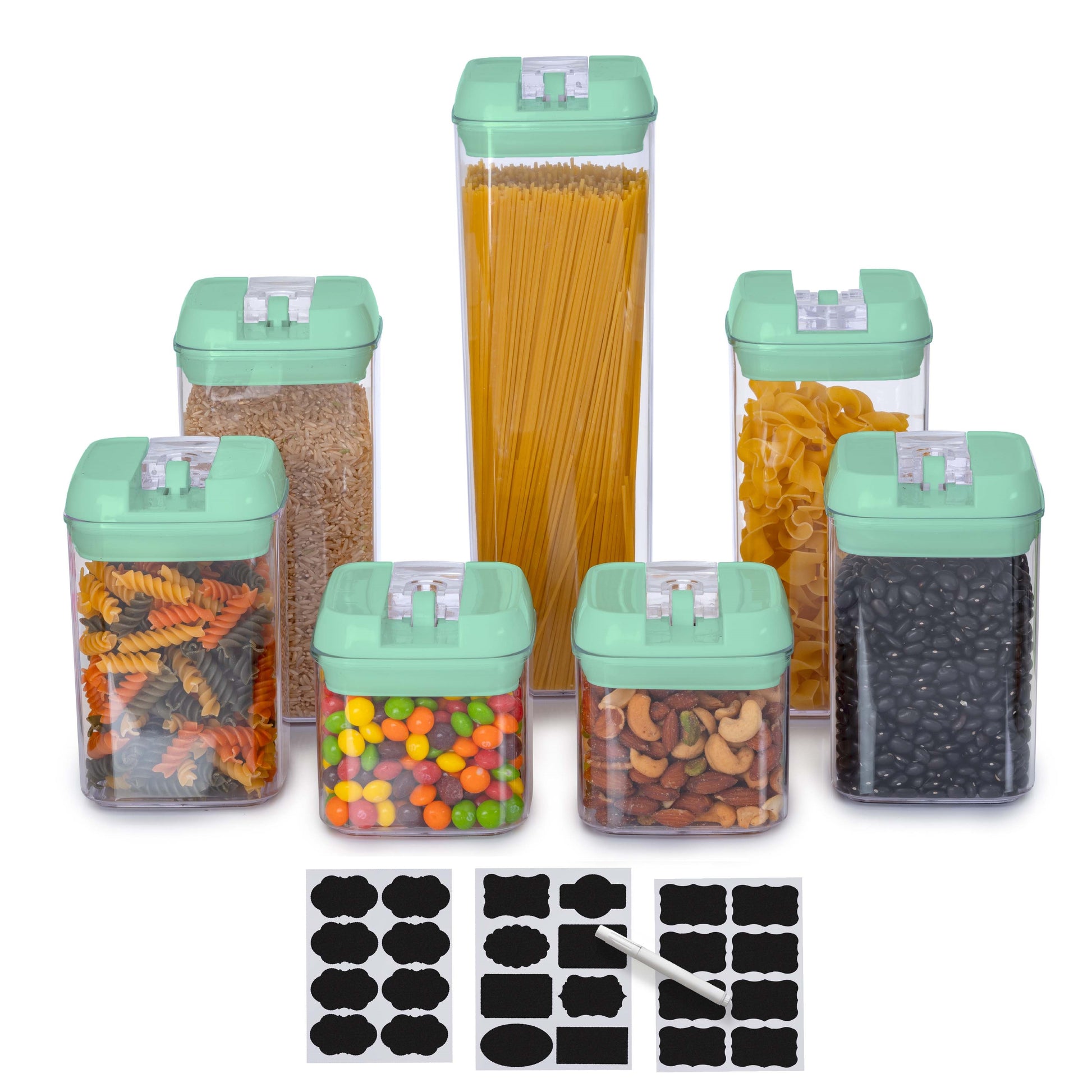 Cheer Collection Set of 7 Airtight Food Storage Containers plus Dry Erase Marker and Label - Multiple Colors Available