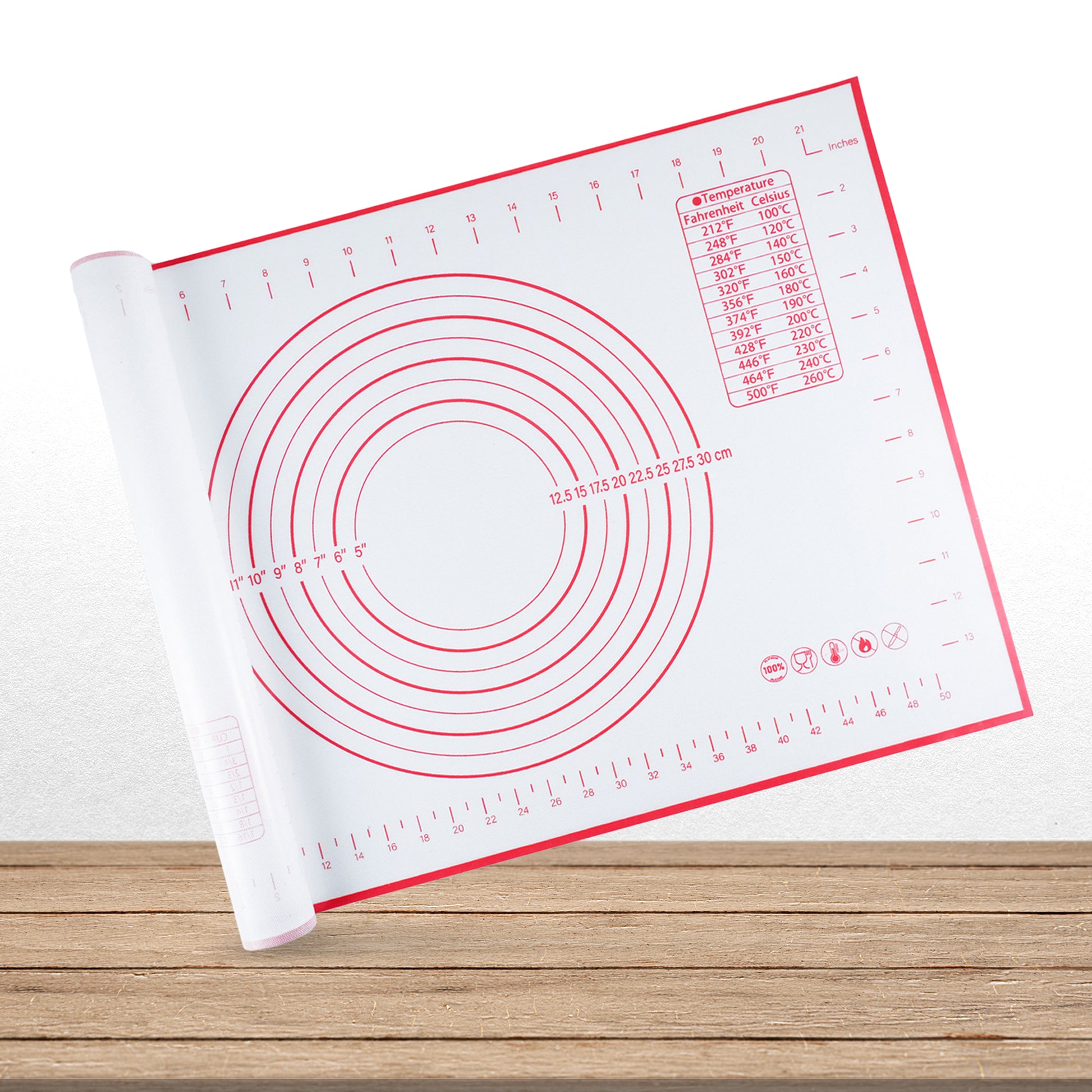 - All The Space You Knead: This silicone heat resistant mat measures 16” x 20” inches to give you all the space you need to roll, knead, and shape dough while the dimension markings and size in inches help you get a perfect circle every time