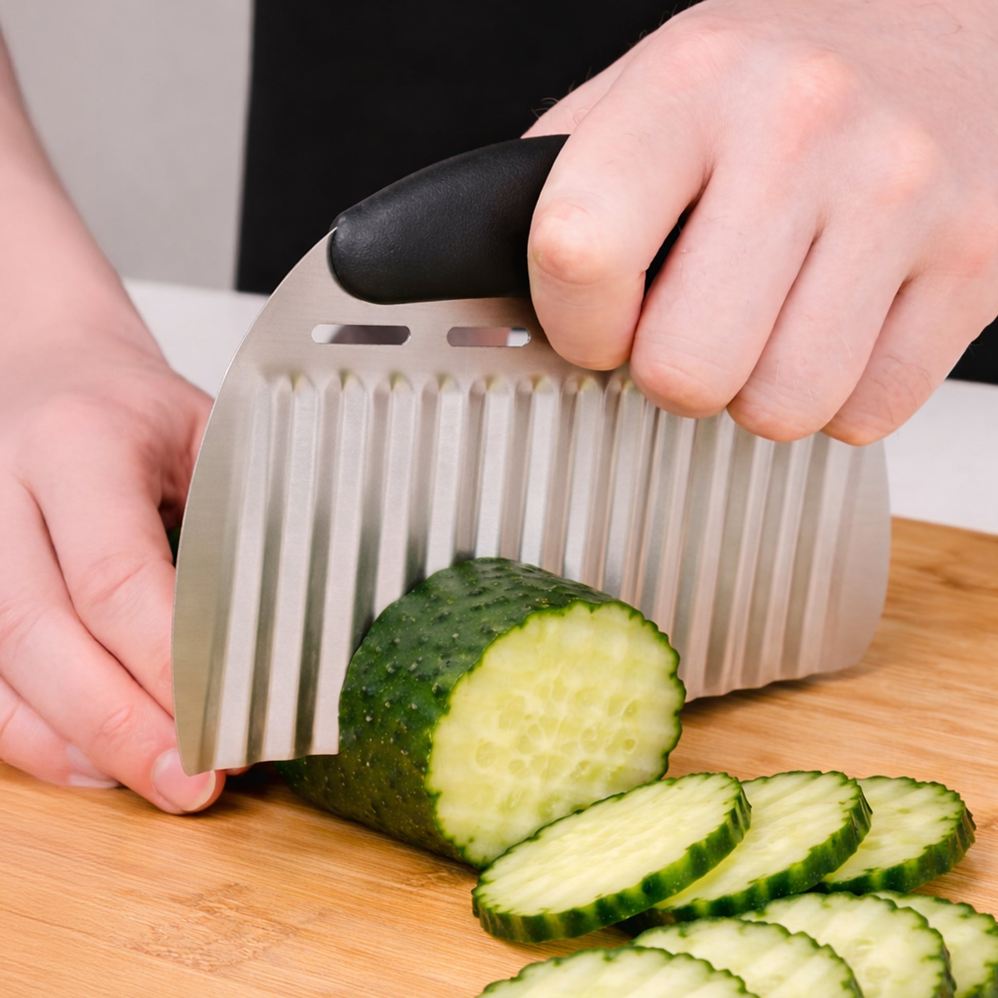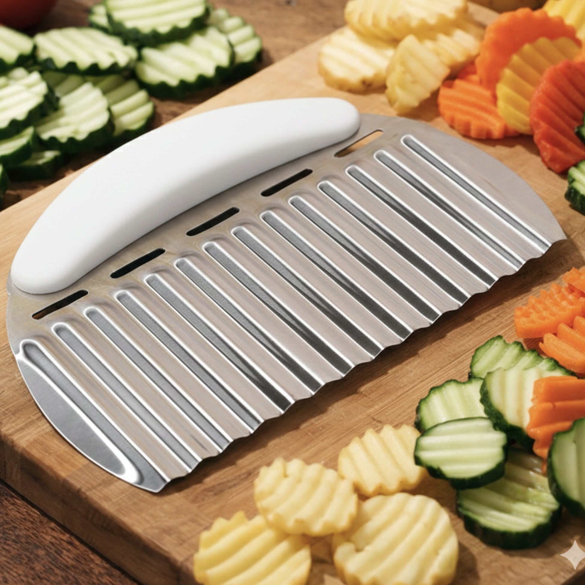 CRINKLE CUTS MADE EASY: Designed to create uniform wavy slices for fries, chips, and vegetables. The ridged blade helps produce decorative cuts with simple downward pressure. Ideal for adding texture and presentation to meals. Makes food prep more fun and creative